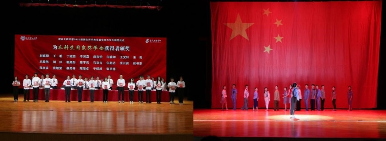为发挥榜样引领作用,激励新生奋发图强,典礼现场为上一学年“建工之星”、校优秀学生标兵、国家奖学金获得者颁奖。校优秀研究生标兵、学术之星崔凯、校自立自强标兵马京吉作为在校生代表讲述奋斗故事,鼓励新生作为国家富强的见证者、受益者,要心有所信,成为民族复兴的参与者、见证者。美轮美奂的舞蹈《回望信仰》衬托先辈们的信仰熠熠生辉,更是激励青年一代要用奋斗擦亮青春底色、以实干担当时代重任。