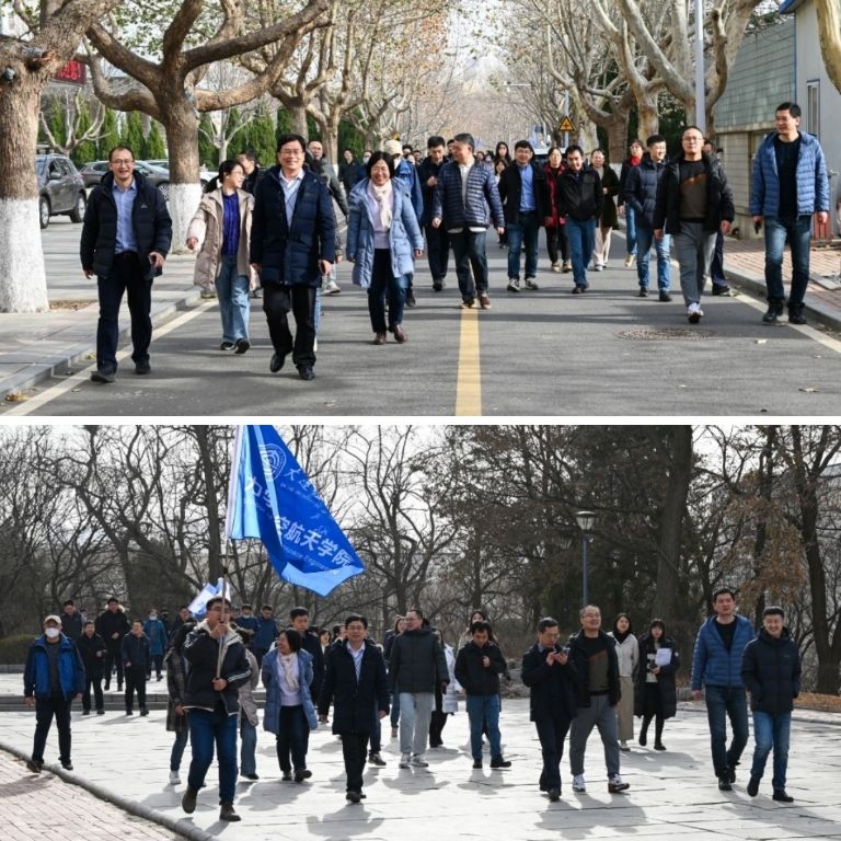 下午12时30分,徒步队伍从力学楼门前出发,经由山上礼堂、电气学院、彩虹桥、大工湖等,最终抵达A字楼。初冬乍寒,煦阳微醺,清新的空气中透着一丝暖意,各位老师从忙碌的状态中放松下来,健步行走,享受午后的惬意,欣赏沿途美景,畅谈学院前景,沟通近期工作,一路欢声笑语。