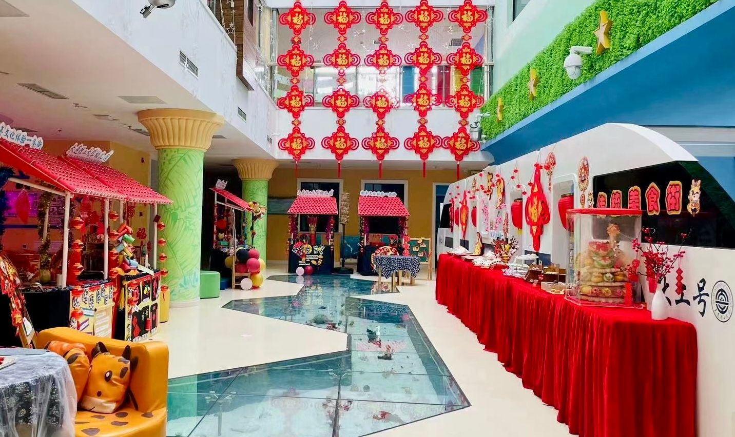 玉兔辞旧春华启,龙腾新春气象新,甲辰龙年即将到来,幼儿园里张灯结彩、喜气洋洋,一场充满传统仪式感的民俗游乐体验活动,在全体老师的精心准备下拉开帷幕。此次活动以“喜迎新年 体验民俗”为主题,创设了美食相伴、瑞龙迎新、冰糖葫芦、百福具臻四个展区,旨在让小朋友在游乐体验中,陶冶情操、丰富中国传统文化知识。