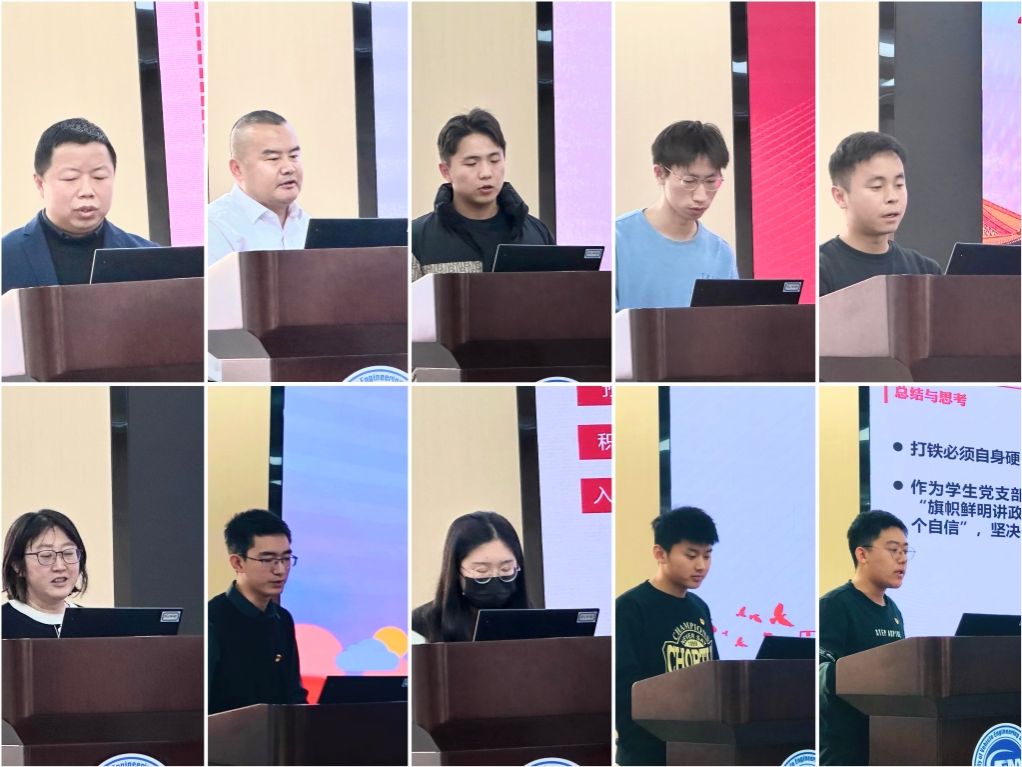 会上,学院全体教师党支部书记和学生党支部书记聚焦2023年度基层党建重点任务和特色工作,重点围绕开展主题教育和推进“一融双高”建设举措及成果,依次进行现场述职,汇报并展示一年来以高质量党建引领事业高质量发展的成效。