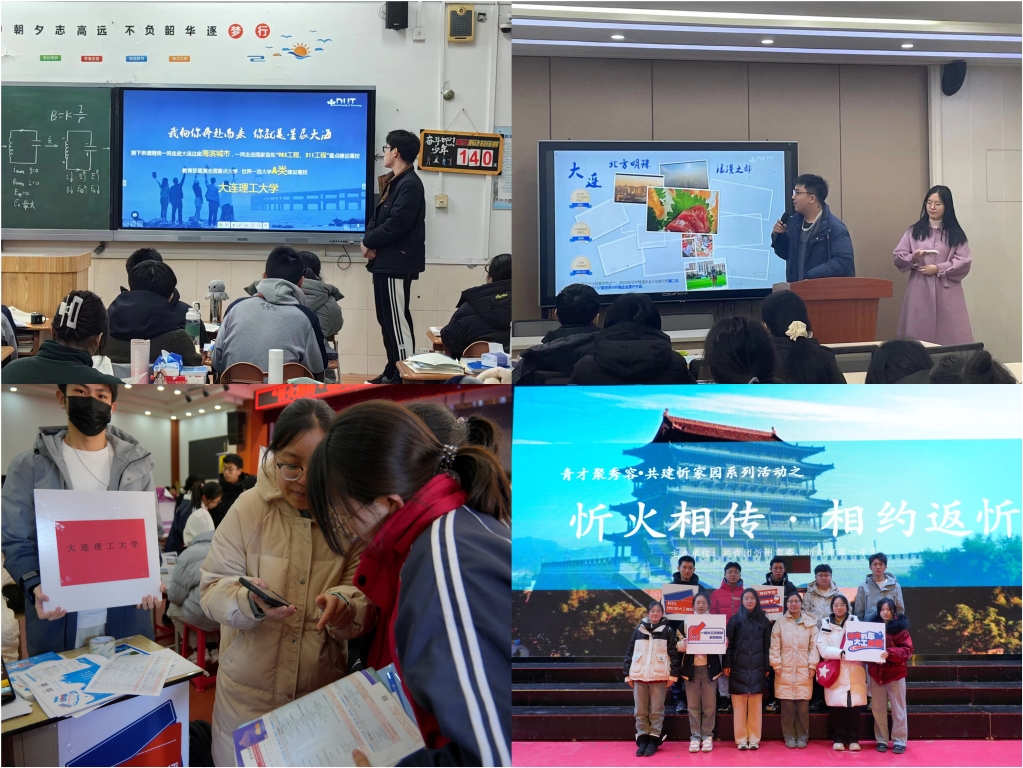 “缘来是理·惟楚有材”寒假社会实践团前往四所湖北省省级示范高中,采用“礼堂宣传”和“摆点咨询”两种形式开展校园招生宣传,从地理位置、学校特色、校园生活三方面,将我校的悠久历史和独特优势娓娓道来,实践团感受到母校高中学子对于大工的浓厚兴趣和热切向往,对进一步扩大学校在湖北省招生宣传的影响力充满信心。“连理同忻”寒假社会实践团走进山西省忻州一中开展招生交流会,通过多媒体展示、互动问答等形式,让学弟学妹们对大工有了更为全面深入的了解。会议结束后,实践团还为现场的同学们发放了自行设计的宣传品,吸引了众多同学前来咨询,现场氛围十分火热。