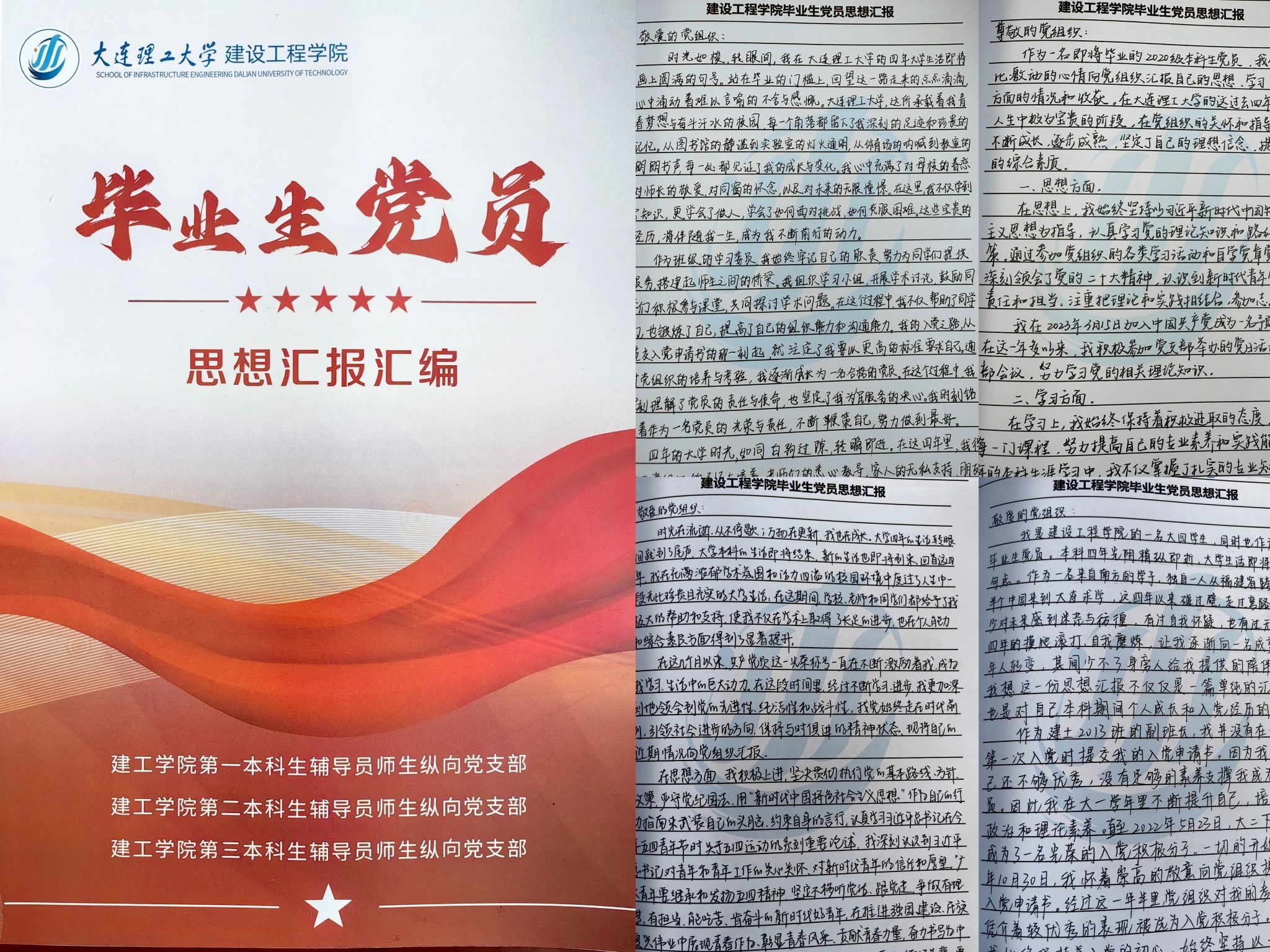 在即将启程之际,学院全体59位毕业生党员回顾四年成长与进步,感念学院的培养,饮水思源,展望未来,手写在校期间最后一份思想汇报装订成册,递交给学院党委。
