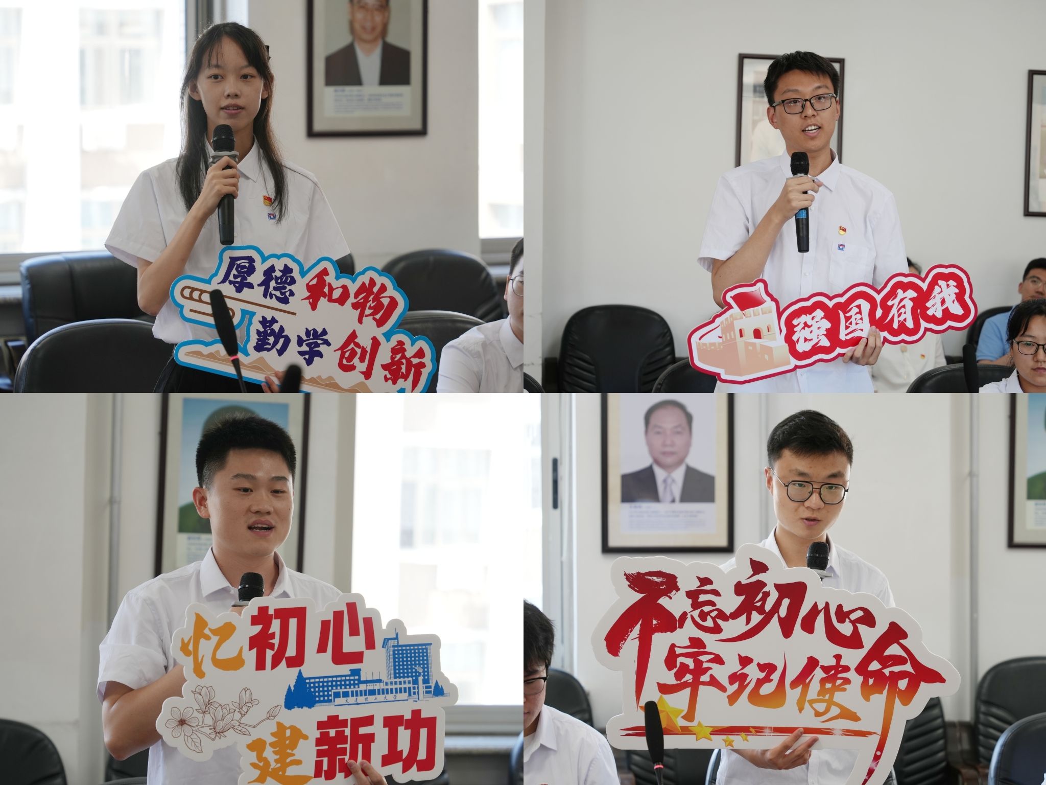 “我叫任奉垚,我即将奔赴一带一路建设,在大国工程中续写自己的青春价值”“我是石凯齐,我将回到我的家乡辽宁,用实际行动诠释爱辽兴辽的使命担当”“我是徐建一,我将继续攻读研究生,以科研报效祖国,以实际行动服务国家海洋强国战略”,在本次党日活动中,毕业生党员一一述说报国志、爱校情,立志在未来不同的岗位中传承红色基因,彰显党员担当。