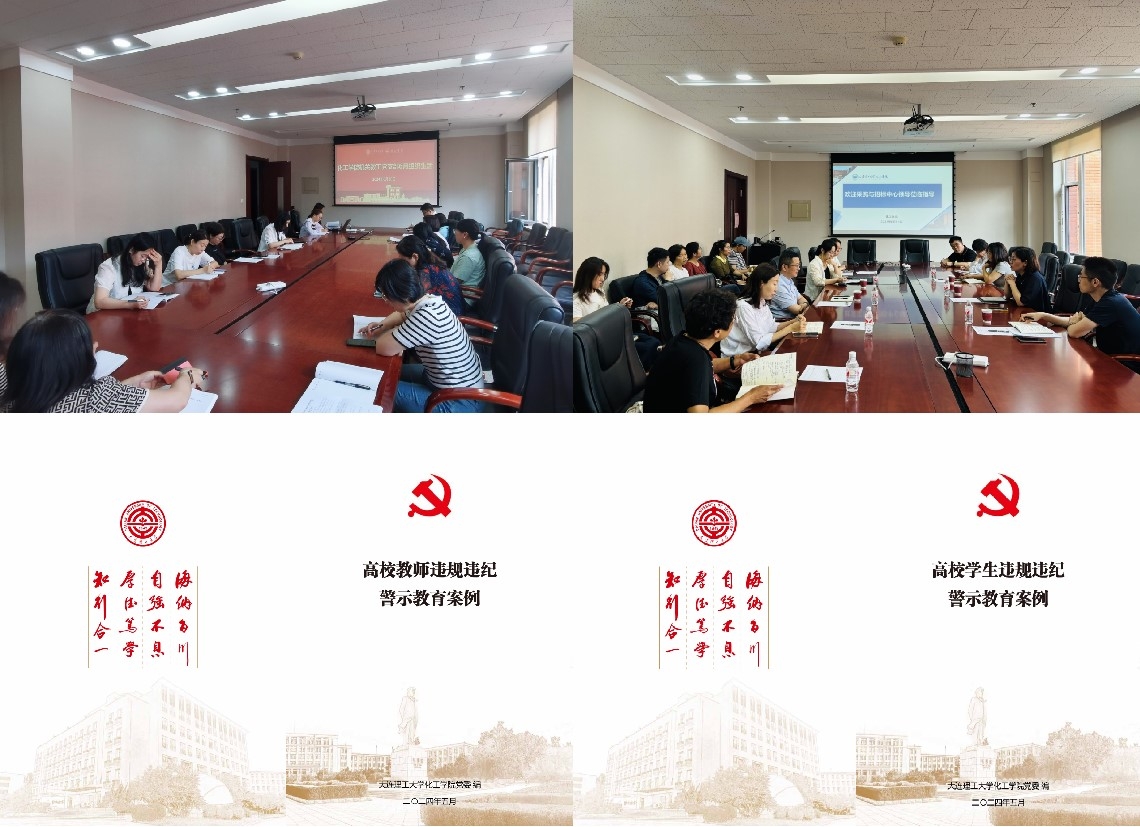 学院注重将党纪学习教育与事业发展紧密结合,制定《化工学院本科招生宣传工作实施办法》《辽宁省重点实验室配套经费管理办法(试行)》,营造风清气正的良好政治生态;邀请学校采购与招标中心主任于青一行到学院调研,进行采购政策解读及答疑,增强廉洁自律意识;组织学院机关各部门结合工作实际开展廉政风险点排查,筑牢廉政防线。同时,组织各教工党支部学习《大连理工大学国内公务接待管理办法》(2023 年版),加强公务接待、公务用车等管理,严格按党性原则、纪律规矩、制度程序办事,确保中央精神落到实处;学院党委为各党支部编印《高校教师违规违纪警示教育案例》《高校学生违纪警示教育案例》汇编,广泛开展警示教育。