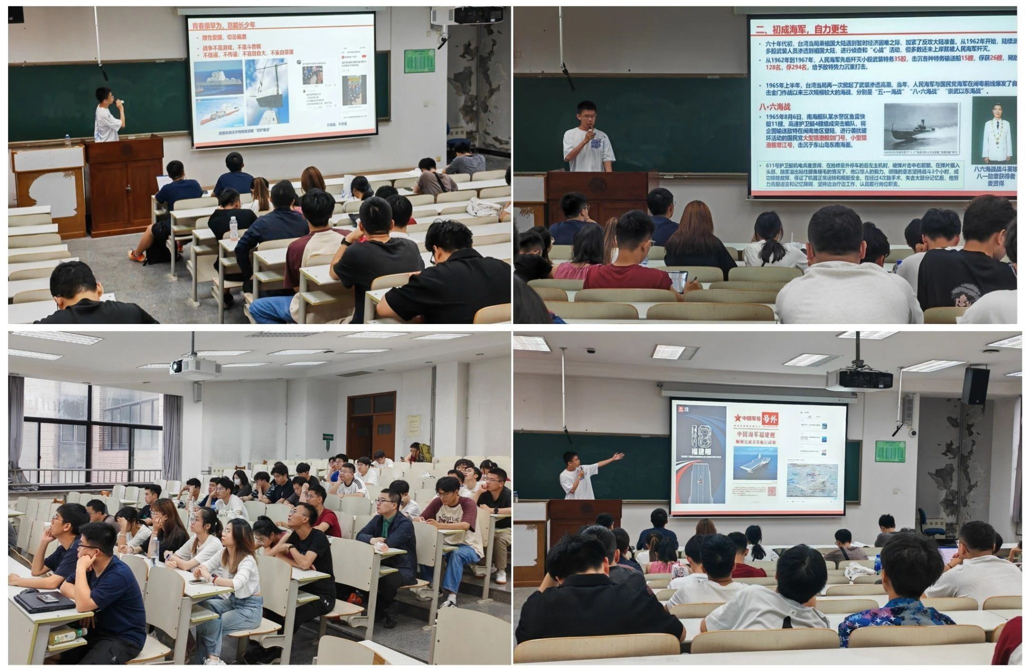 6月29号晚,学院研究生党员宣讲团在研教楼201开展以“人民海军向前进,舰行万里不迷航”为主题的宣讲活动,学院5个研究生党支部参加本次宣讲活动。主讲人姜振祺同学为大家讲述了中国人民海军在中国共产党的领导下,75年的强军之路。此次党课,让同学们感受到我国海军精神,向中国共产党领导的人民海军致以崇高的敬意,立志为强国强军建设做出大工电气人应有的贡献。