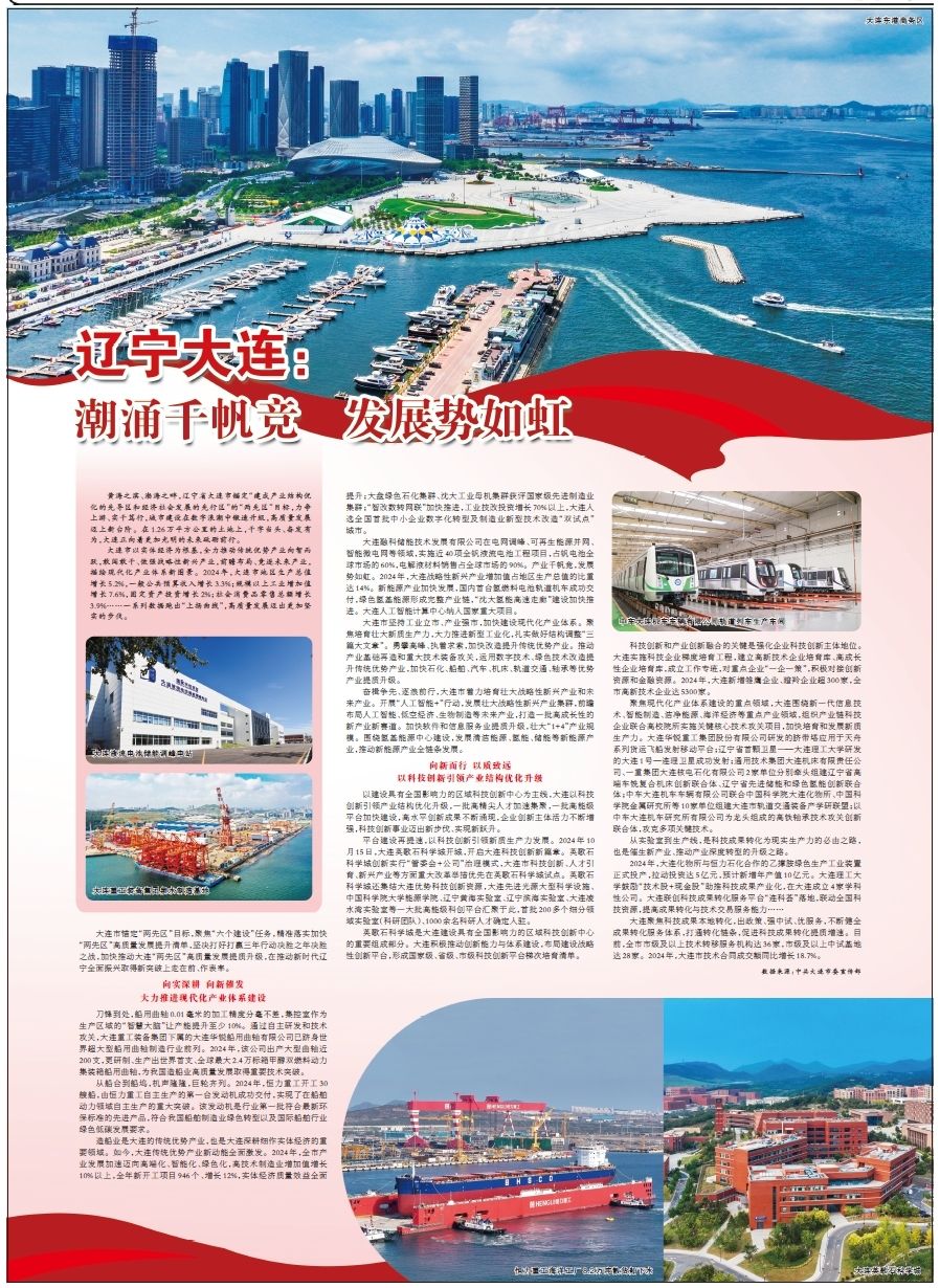 大连市坚持工业立市、产业强市,加快建设现代化产业体系。聚焦培育壮大新质生产力,大力推进新型工业化,扎实做好结构调整“三篇大文章”。勇攀高峰、执着求索,加快改造提升传统优势产业。推动产业基础再造和重大技术装备攻关,运用数字技术、绿色技术改造提升传统优势产业,加快石化、船舶、汽车、机床、轨道交通、轴承等优势产业提质升级。