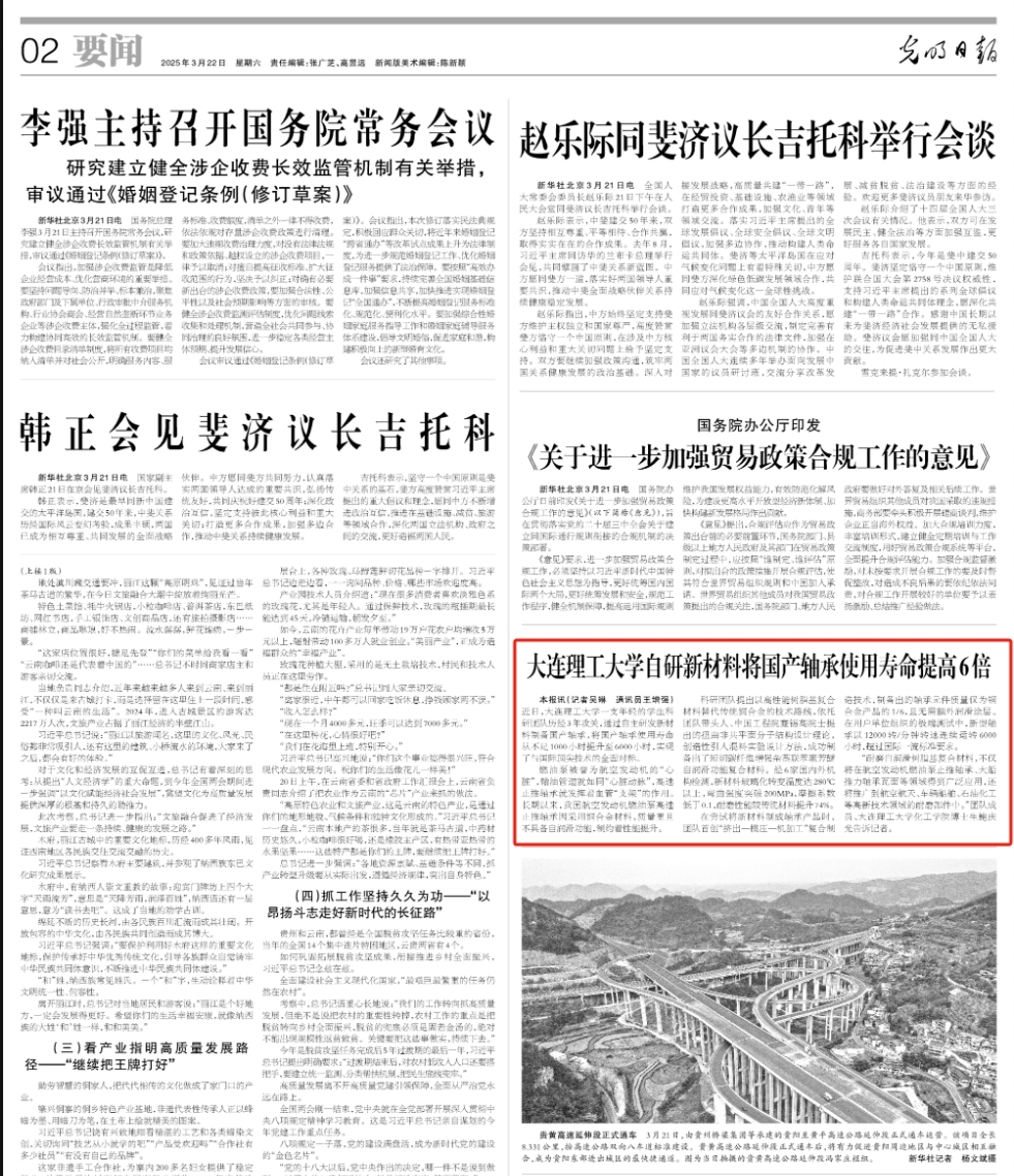“耐磨自润滑树脂基复合材料,不仅将在航空发动机燃油泵止推轴承、大船推力轴承瓦面等领域得到广泛应用,还将推广到航空航天、车辆船舶、石油化工等高新技术领域的耐磨部件中。”团队成员、大连理工大学化工学院博士生鲍庆光告诉记者。《光明日报》( 2025年03月22日 02版)