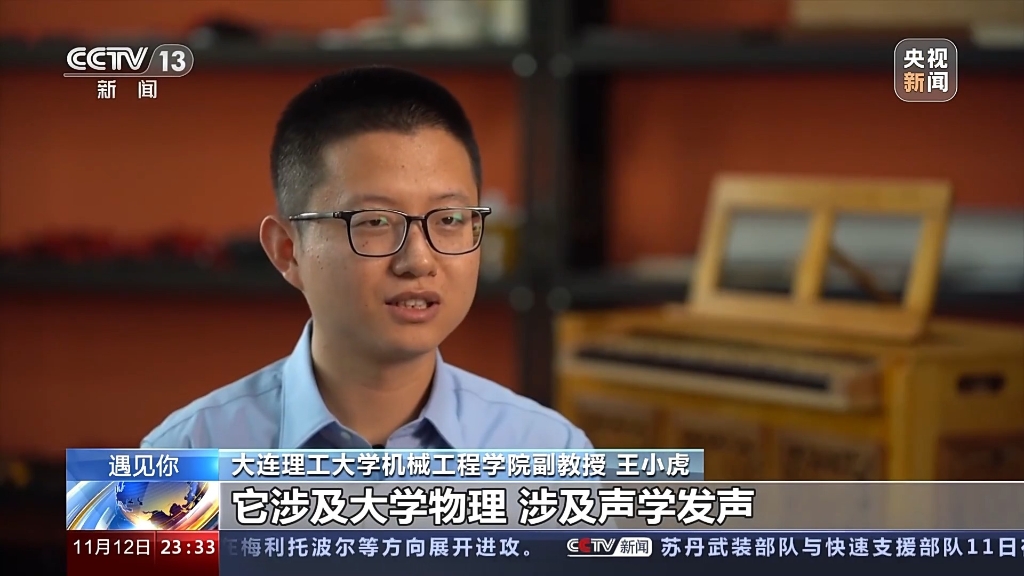 大连理工大学机械工程学院副教授 王小虎:管风琴它是一个多学科的融合体,它涉及大学物理,涉及声学发声,涉及机械制图,要把图画出来,涉及机械原理里面的方方面面的这种各种传动。
