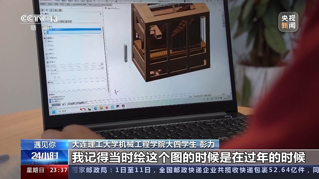大连理工大学机械工程学院大四学生 彭力:用周末时间,然后还有最主要的假期,我记得当时绘这个图的时候是在过年的时候,在家里就慢慢画,然后晚上画完之后定点开会,我做了一遍不行,可能得重新建模,再进行第二遍第三遍第四遍第五遍,我这个应该是第六遍的成果。