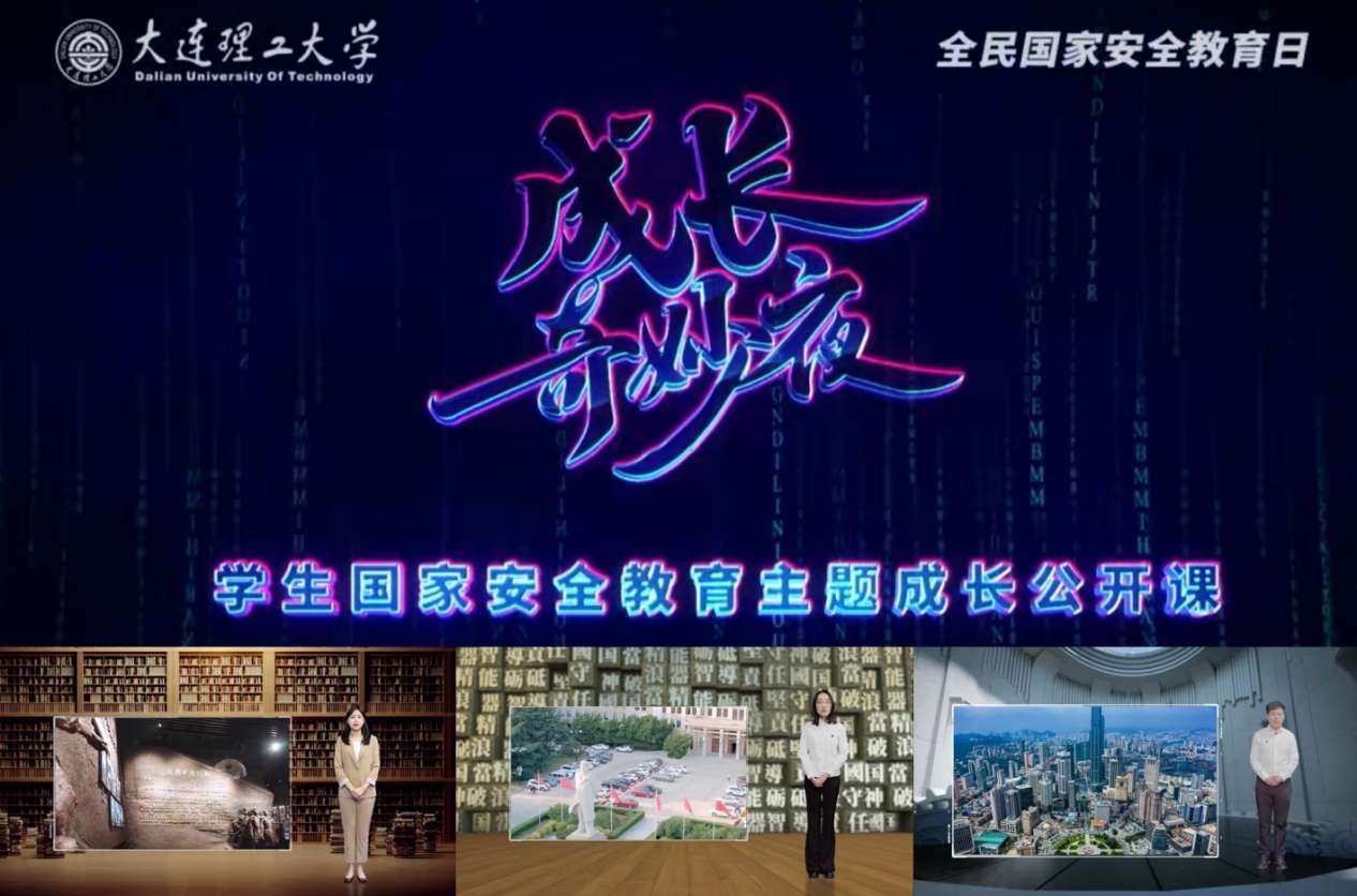 4月14日晚,在第9个全民国家安全教育日来临之际,大连理工大学精心策划、推出“成长奇妙夜”学生国家安全教育主题成长公开课。以数字化、智能化、网络化为媒介,云端链接新中国国歌素材地、抗日战争起始地、共和国工业奠基地,组织引领学生学习、见证、领会维护国家安全的意义,激发爱党爱国、矢志卓越的情怀,践行守护国家安全的责任。