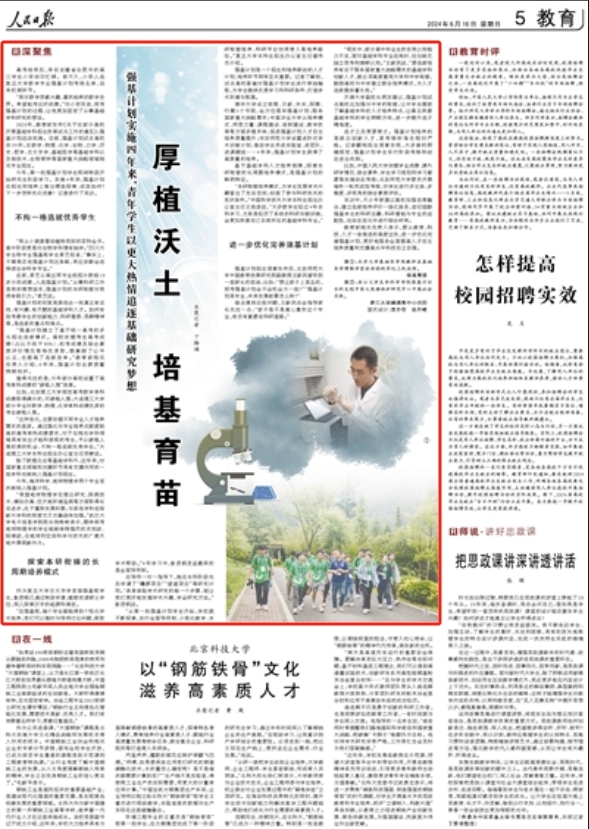 清华大学设立致理、日新、未央、探微、行健5个书院,全方位落实强基计划,服务国家重大战略需求;中国农业大学从培养模式、师资力量、课程建设、体制建设、教学改革等方面多措并举,促进强基计划人才自主培养质量提升;华东师范大学设置进阶式学术训练计划,推动学生早进实验室、进团队、进课题组……4年来,强基计划学生获得了高质量的培养。