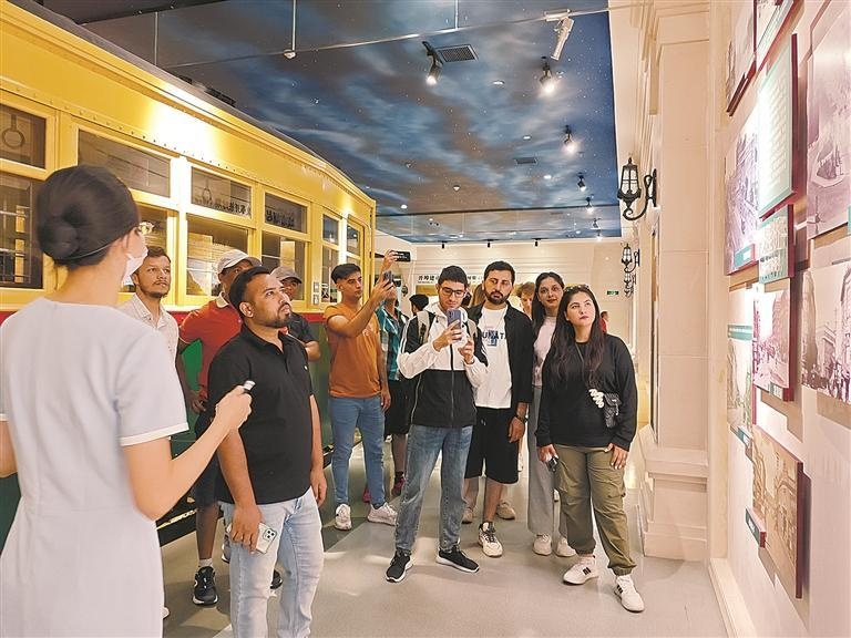 在大连市规划展示中心的大厅里,来自俄罗斯、巴基斯坦、罗马尼亚、孟加拉国等国家的留学生在英文解说员翔实的讲解中,通过图片、文物、视频、影像全方位地了解大连的历史文化、城市建设、自然资源等,更加切身感受到大连在现代化城市规划和可持续发展中取得的成绩。