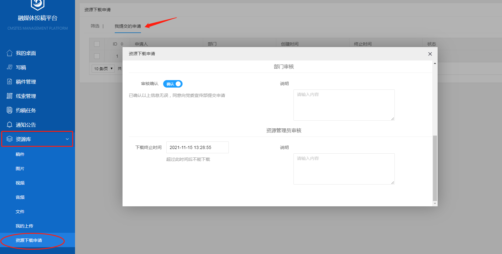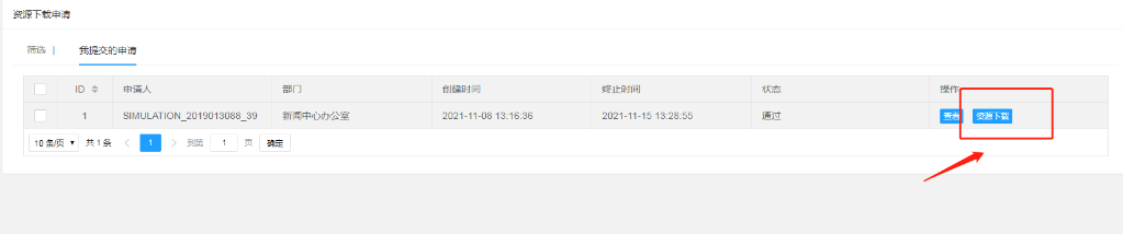 在“资源库”——资源下载申请单元也可查看申请内容