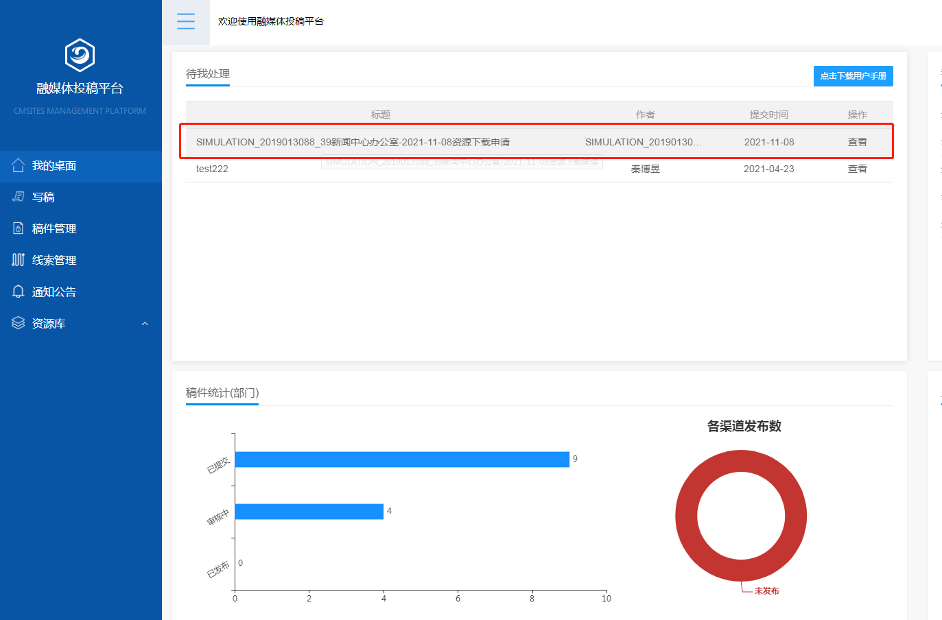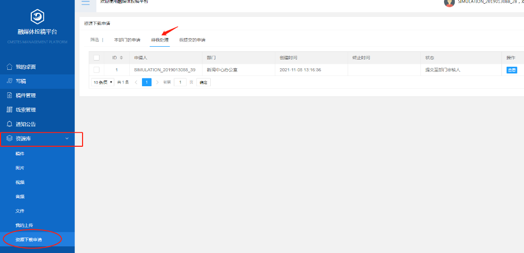 1.在“待我处理”版块查看资源下载申请
