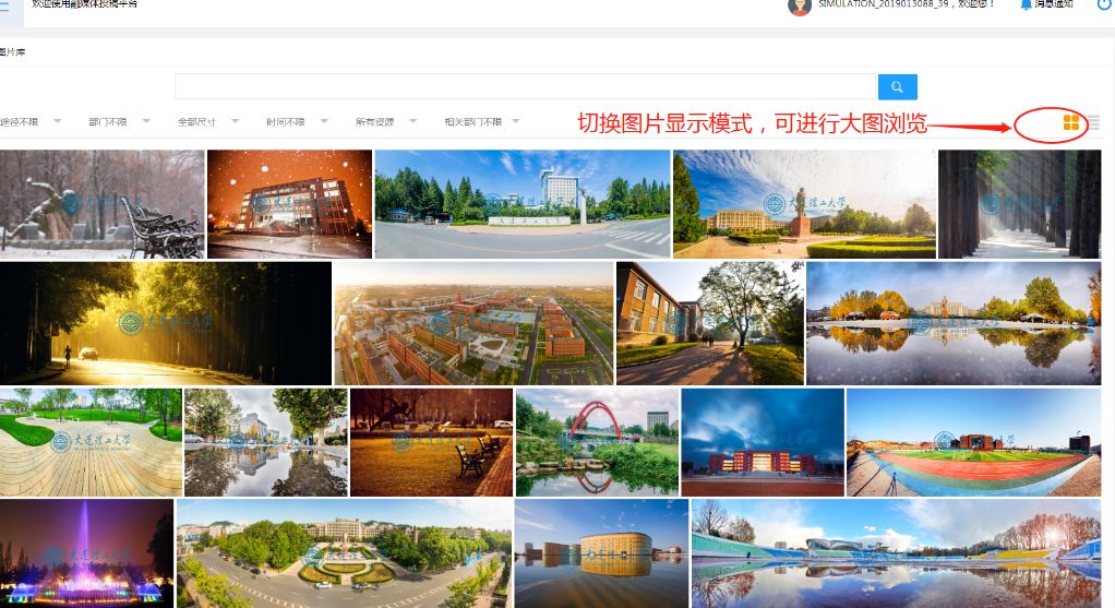 学校宣传图片下载、图说大工栏目图片下载、文件夹管理模式等功能将不断更新,真诚期待各位老师的意见建议,帮助“云端”图片库进一步修改完善。服务电话:84706280。