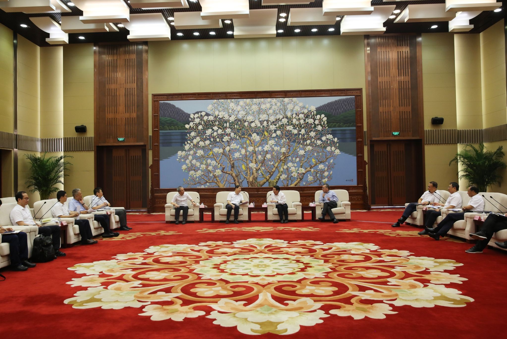 在中国航空发动机集团有限公司,项昌乐、贾振元同集团公司党组书记、董事长曹建国,总经理、党组副书记李宏新进行座谈交流。