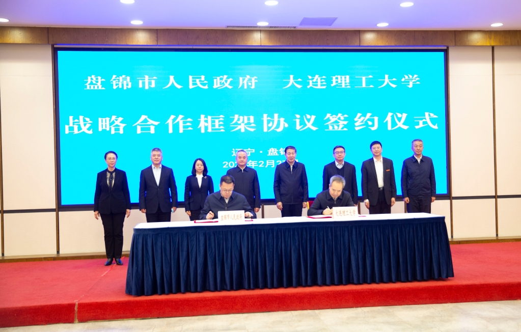项昌乐、贾振元、王炳森、邢鹏共同出席大连理工大学与盘锦市人民政府战略合作框架协议签约仪式。根据协议,双方将在市校融合、协同育人、高水平人才引进、科技创新等领域再次拓展合作深度广度,务实合作,实现共赢。