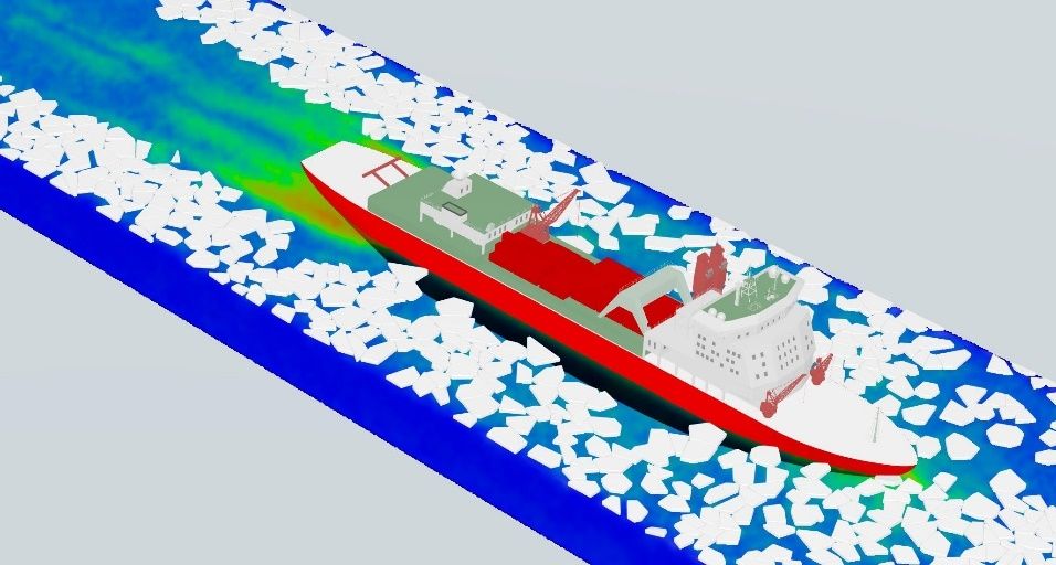 ICE-SDEM是一款基于离散元、有限元和计算流体力学的多介质耦合仿真软件,具有结构弹塑性动力学分析、海冰破坏力学分析及流固耦合分析功能。软件具有丰富的极地复杂冰况环境模拟功能,可实现平整冰、冰脊、冰山、碎冰等多种冰况下船舶直行、转向、尾向和斜向等多种冰区操作模式下的冰载荷数值计算;该软件集成了强大的多物理场建模和耦合分析能力,在并行框架下解决了不同数值方法间多时间尺度上的计算参数传递协调性问题,建立了海洋结构、海冰、海水耦合的大规模数值分析架构,具备CPU-GPU并行计算功能,发展了基于CPU-GPU协同并行环境下的高性能算法,实现了原型尺度下船海装备冰区作业过程的动力学高效仿真。