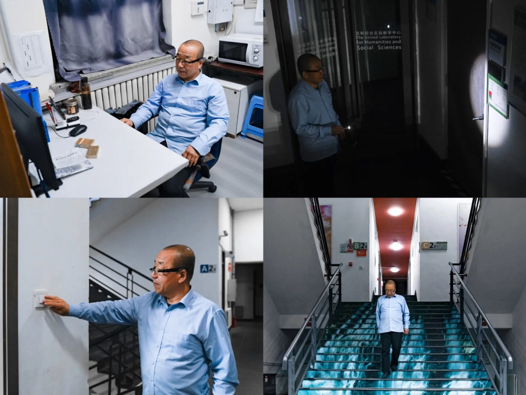 关闭每一盏灯,提醒学生注意休息。巡查每一间教室,是他们不曾松懈的责任。他们是教学楼最后留守的人。