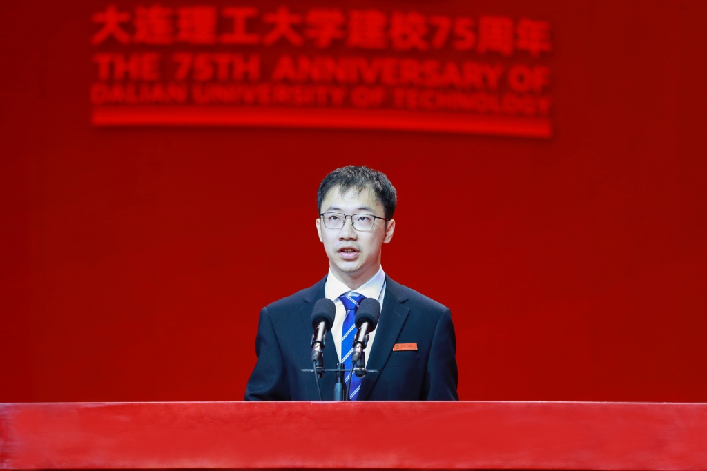 建设工程学院赵云鹏教授代表教师发言。他感恩学校的悉心培养与关心支持,并表示在大工学习、工作的22年里,自己始终得益于大工精神和传统的激励,得益于团队力量的托举。未来将继续履行好教书育人的使命,做好学生成长的引路人、科学高峰的攀登者,为一流大学建设、为国家科技自立自强持续贡献力量。