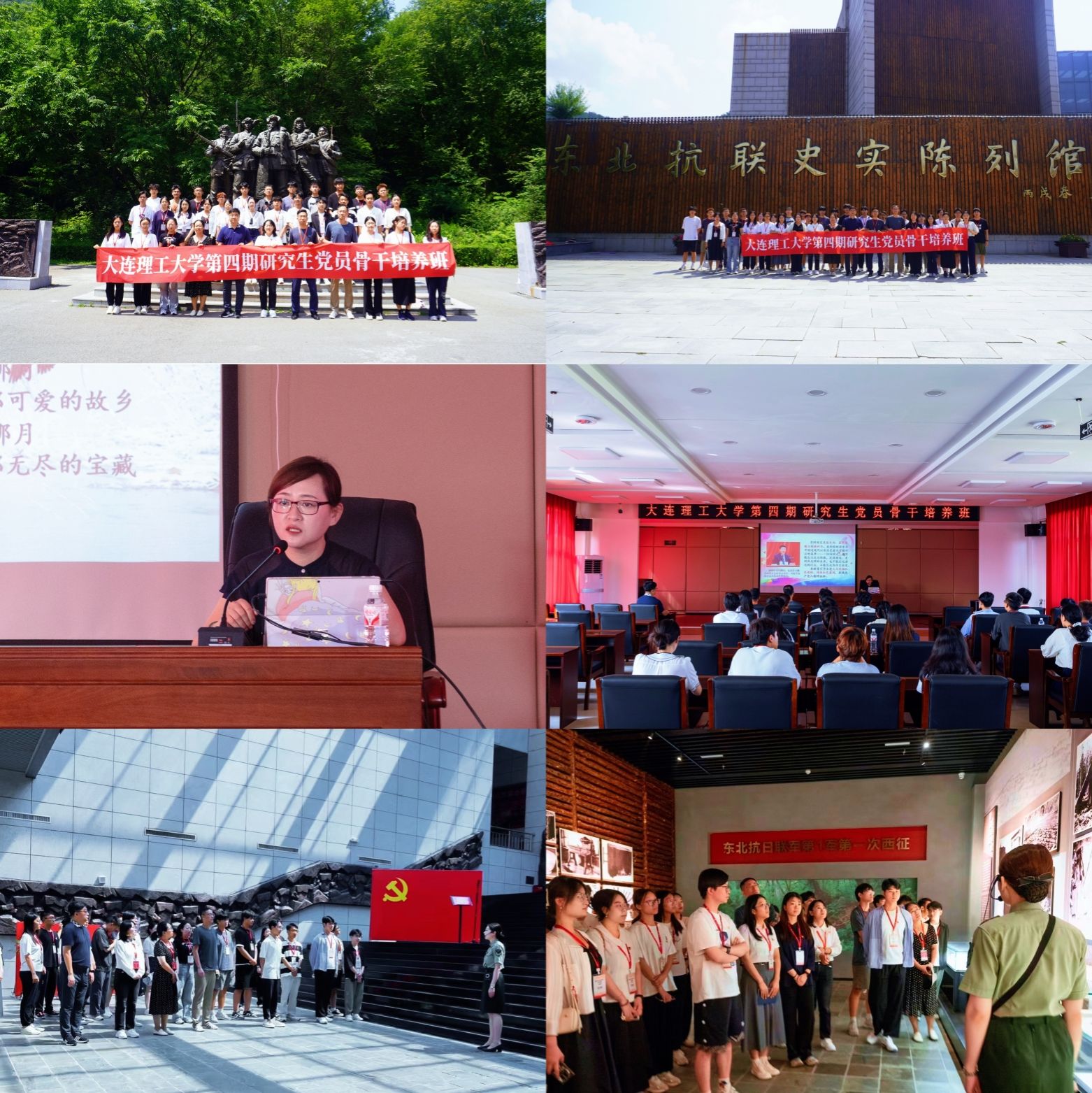 为着力培养学员脚踏中国大地、善作千载之思,进一步学习党的光辉历史,从党史中汲取前行力量,强化理想信念、提升党性修养,立志服务新时代东北全面振兴,按照学校研究生党员骨干培养班培养方案的安排,采取“校内实践+校外实践”相结合的方式开展实践锻炼。校外实践环节,第四期培养班在班主任张晓峰,实践导师李占英、王智宇,理论导师石权、秦雪的带领下,于7月11日至13日前往丹东、本溪走访革命圣地,重温革命历史,学习红色精神。