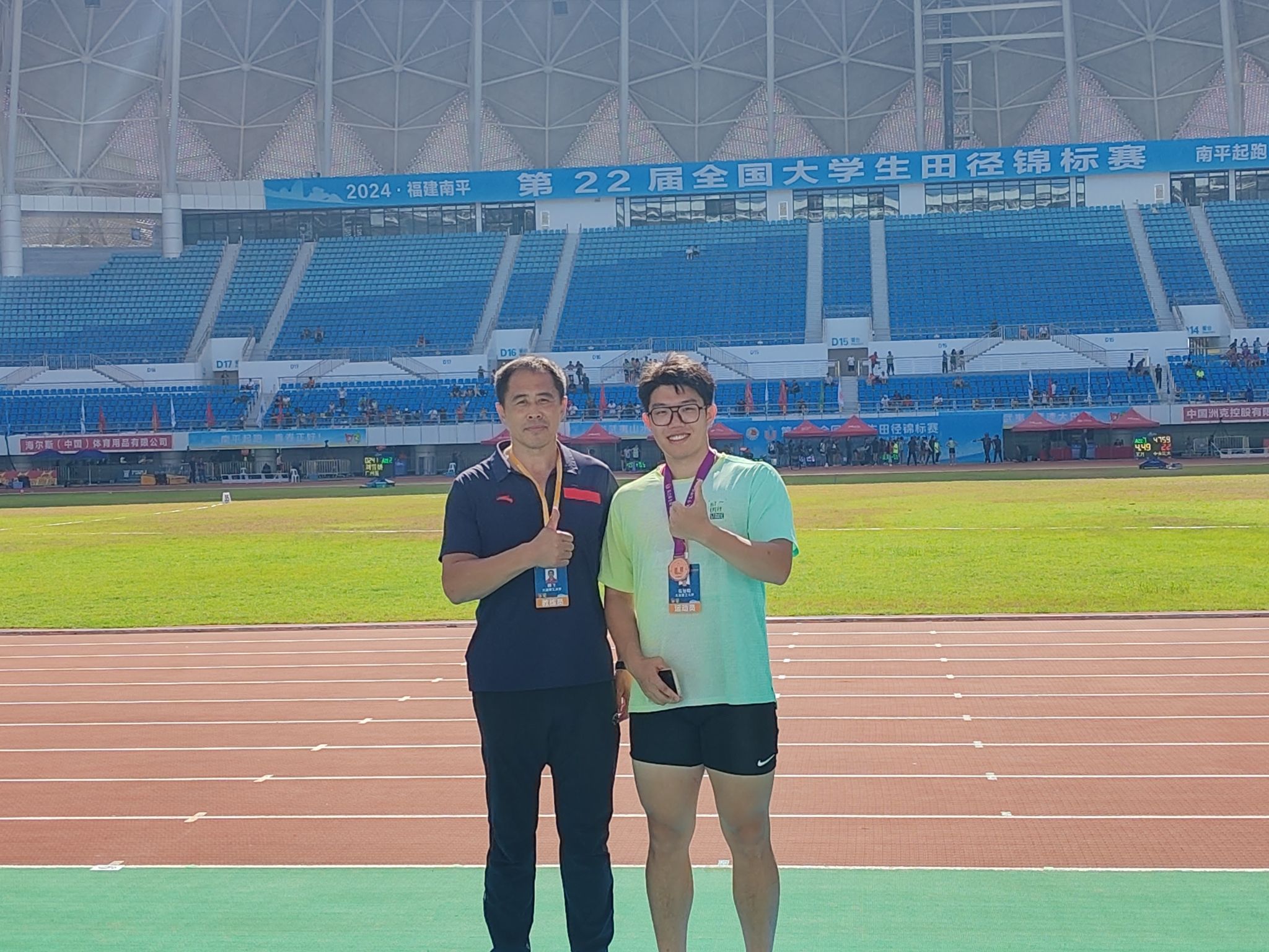 第22届全国大学生田径锦标赛中,我校2021级马克思主义学院本科生吴鸿煌获男子丙组800米冠军,2021级人文学院本科生杜世昭获男子丙组标枪季军,另有6人在女子铁饼、男、女800米,男子400米栏、女子1500米等项目中进入全国前八名。
