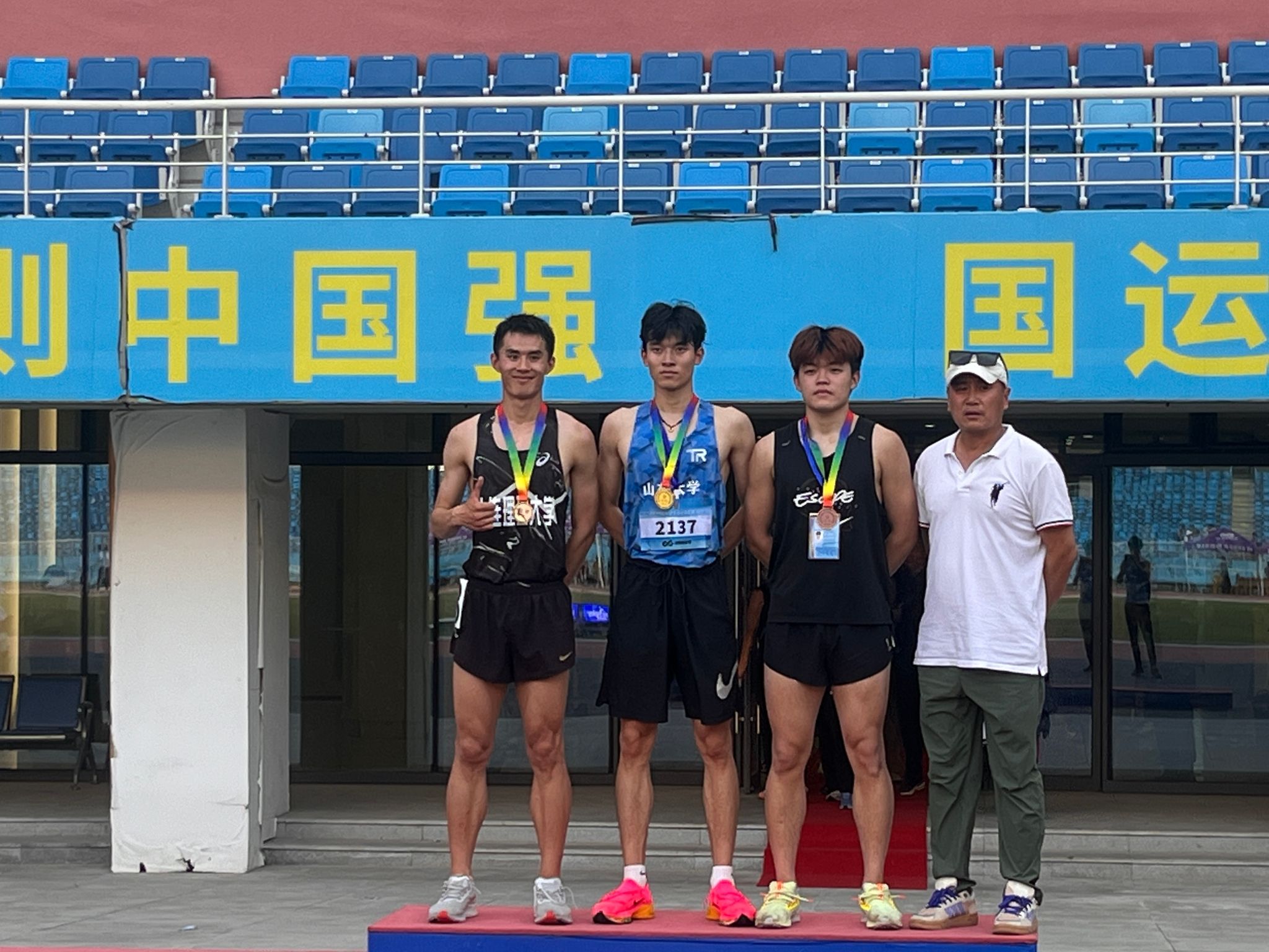 中国大学生田径锦标赛男子丙组800米比赛冠军吴鸿煌(左一)
