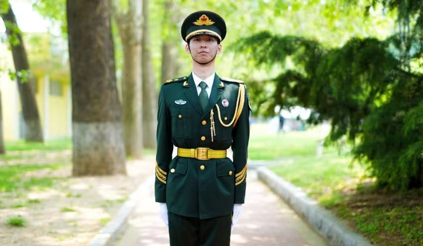 “当五星红旗在晨光中冉冉升起,与那一抹中国红紧密相连的,是每一位国人的骨气与底气。”穿上戎装,成为国旗护卫队的一员,是尚尔真最骄傲的决定。