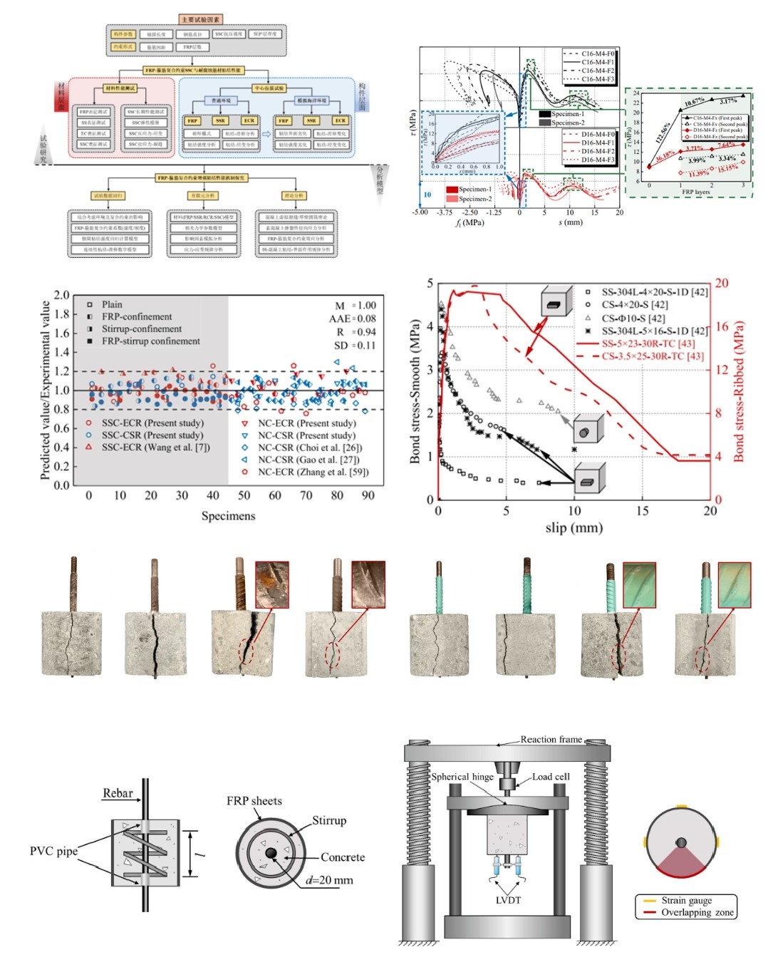 通过对课题的广泛了解和潜心钻研,在导师王吉忠教授的指导下,肖方铎和团队基于海洋基础设施建设展开耐腐蚀材料-海水海沙混凝土结构粘结性能的研究。经大量试验及理论分析,他们提出富有创新性的纤维增强复合材料-钢复合约束,实现了钢混结构粘结性能的提高;他们提出了精度更高、适用范围更广的面相分析的粘结强度分析模型及面相设计的粘结-滑移数值模型,从新材料、新结构的角度为海洋构筑物的建设提供了参考。据此研究成果写成的论文,发表于顶级期刊。同时,他还主动担任多个知名期刊的审稿人以不断地完善自己的科研能力。