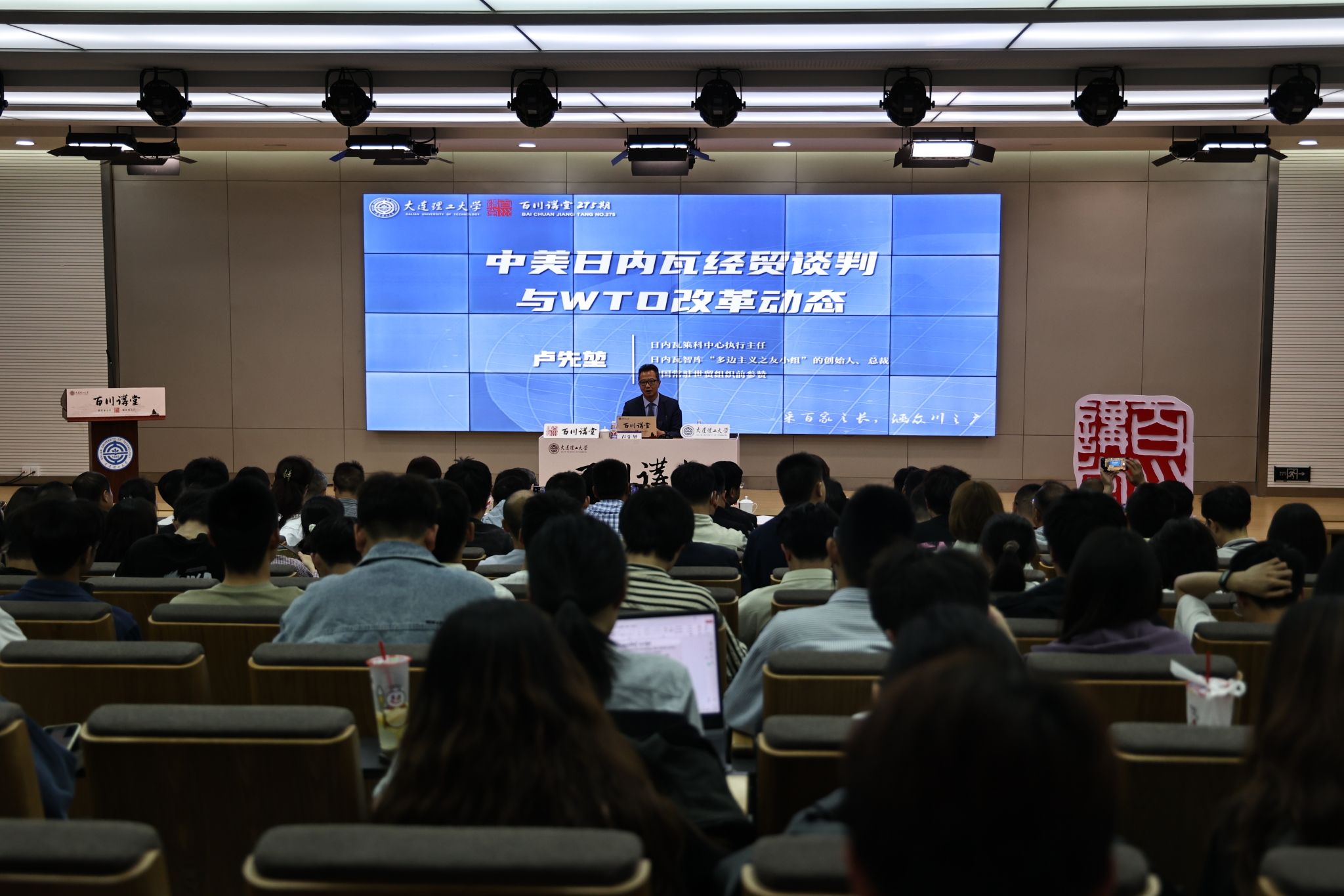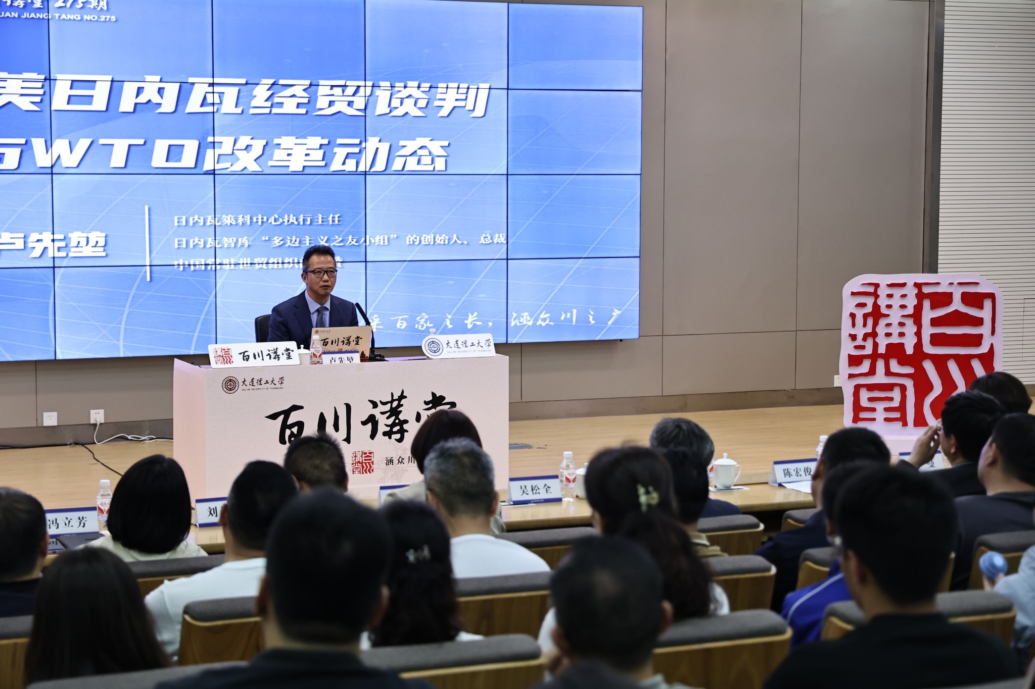在国际经贸风云变幻的舞台上,中美经贸关系与WTO改革一直备受瞩目。5月21日,中国常驻世贸组织前参赞、日内瓦莱科中心执行主任、日内瓦智库“多边主义之友小组”创始人兼总裁卢先堃教授做客“百川讲堂”第275期,带来《中美日内瓦经贸谈判与WTO改革动态》主题讲座,共探国际经贸的奥秘与未来航向。校团委、外国语学院教师代表,各学院、各书院的青年学生以及百川会员共计300余人到场聆听讲座。
