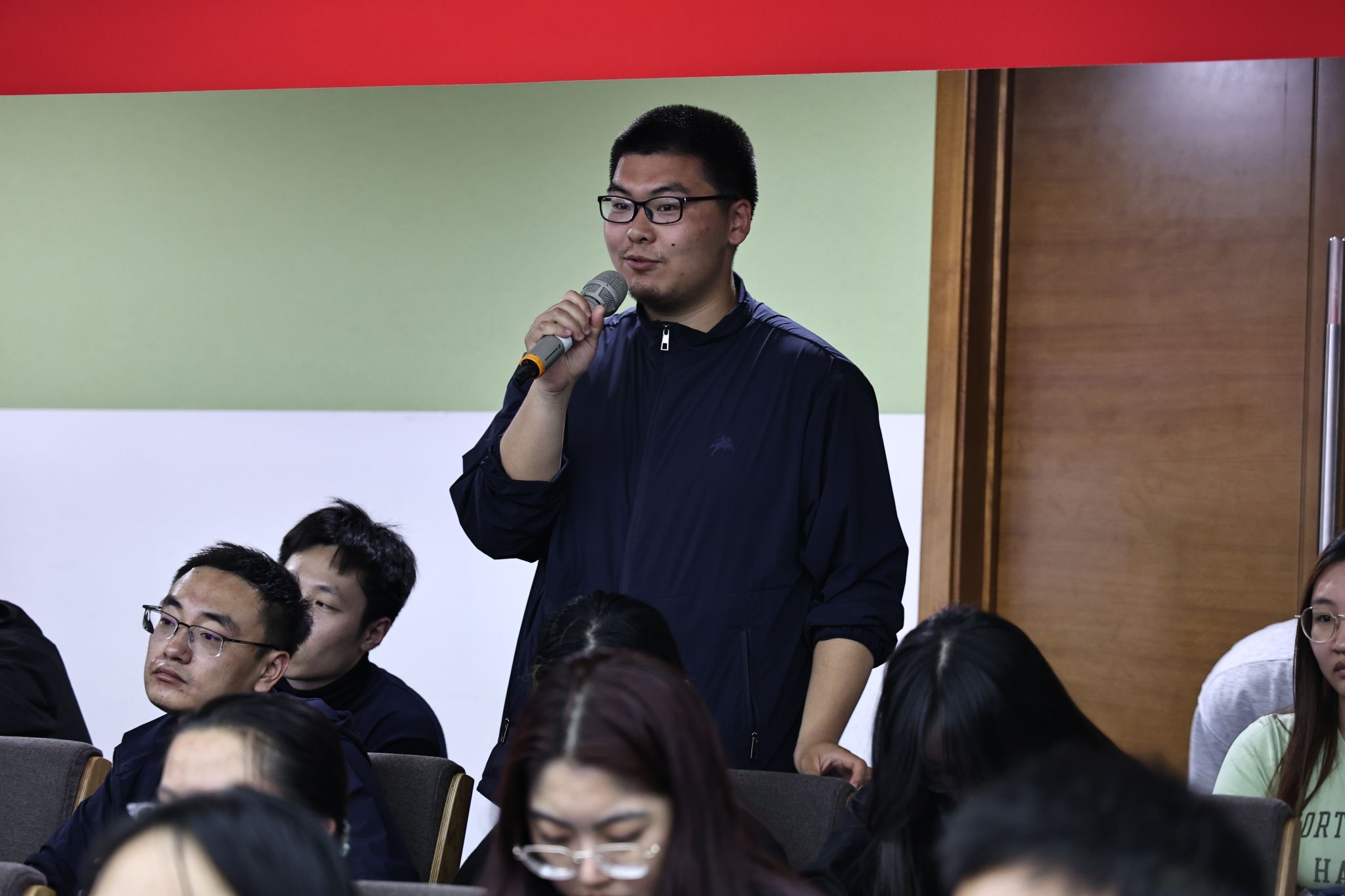 提问环节中,针对同学们提出的“战略脱钩是否只是喘息期而非缓和期”以及“如何提升国际关系素养”等问题,卢先堃给出详细解答。他深入阐述了战略脱钩的本质与影响,并从知识储备、实践锻炼等多个维度给出了提升国际关系素养的建议,并分享亲身经历以激励同学们坚持锻炼身体与持续学习。