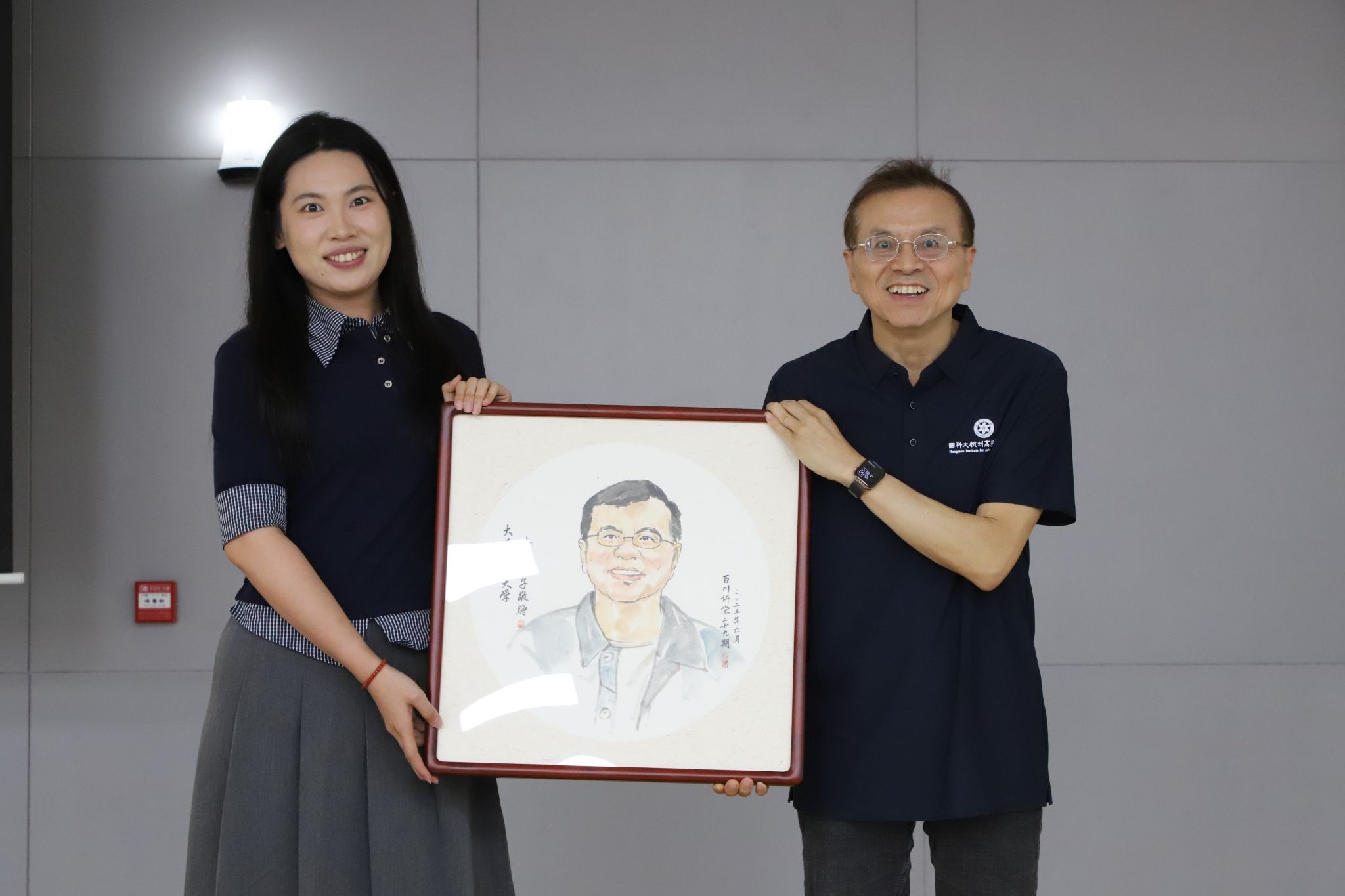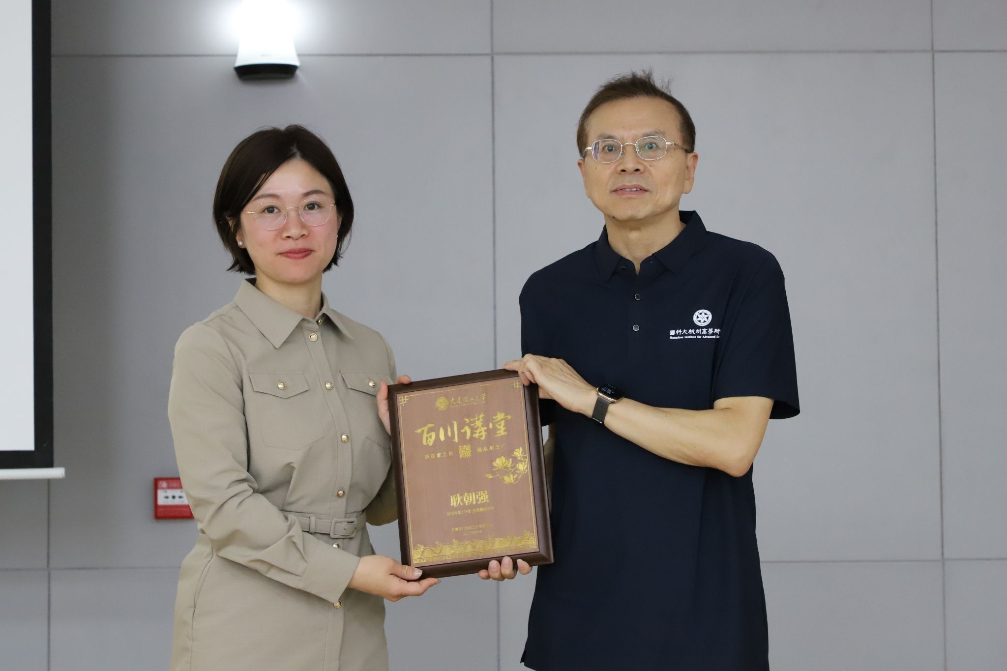 讲座最后,校团委书记刘精晶代表学校为耿朝强颁发“百川讲堂”纪念牌,学生代表赠送国画肖像,以表感谢与敬意。