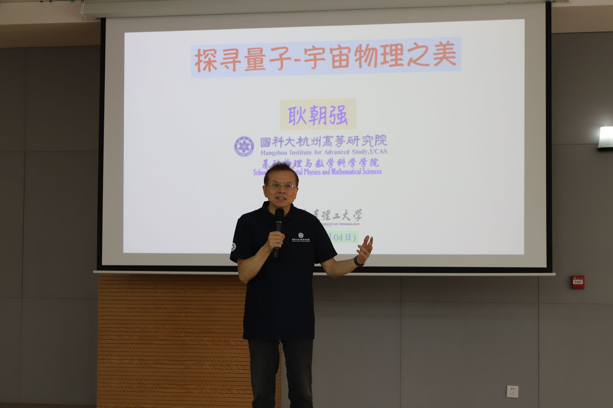 在概率的云海里,量子纠缠是宇宙最古老的情书。6月4日,国科大杭州高等研究院基础物理与数学科学学院执行院长、博士生导师、首席教授耿朝强做客“百川讲堂”第279期暨物理学院大珩讲坛第24期,带来主题为《探寻量子——宇宙物理之美》的精彩讲座。校团委、物理学院教师代表,各学院、书院的青年学生以及百川会员共计200余人到场聆听讲座。