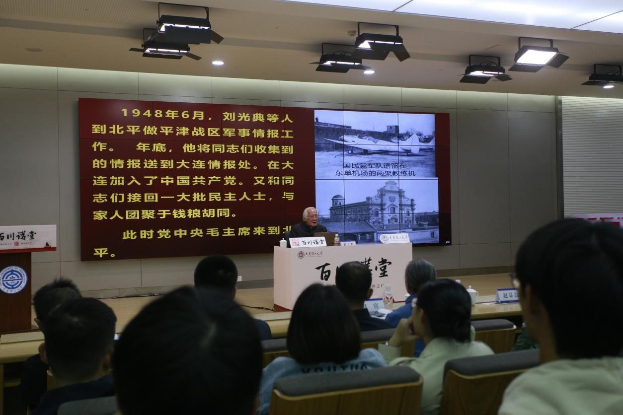 当信仰锚定忠诚的坐标时,每一份坚守都闪耀着荣光。10月11日,中央党校、国家行政学院兼职教授、教育部高校思想政治工作创新发展中心专家、中共台湾英烈刘光典之子、中华英烈褒扬事业促进会导师刘玉平教授做客“百川讲堂”第288期,带来主题为《大连英雄刘光典——红色特工的传奇人生》讲座,来自各学院、医学部、各书院的本研团支部青年和百川会员共计400余人到场聆听讲座。