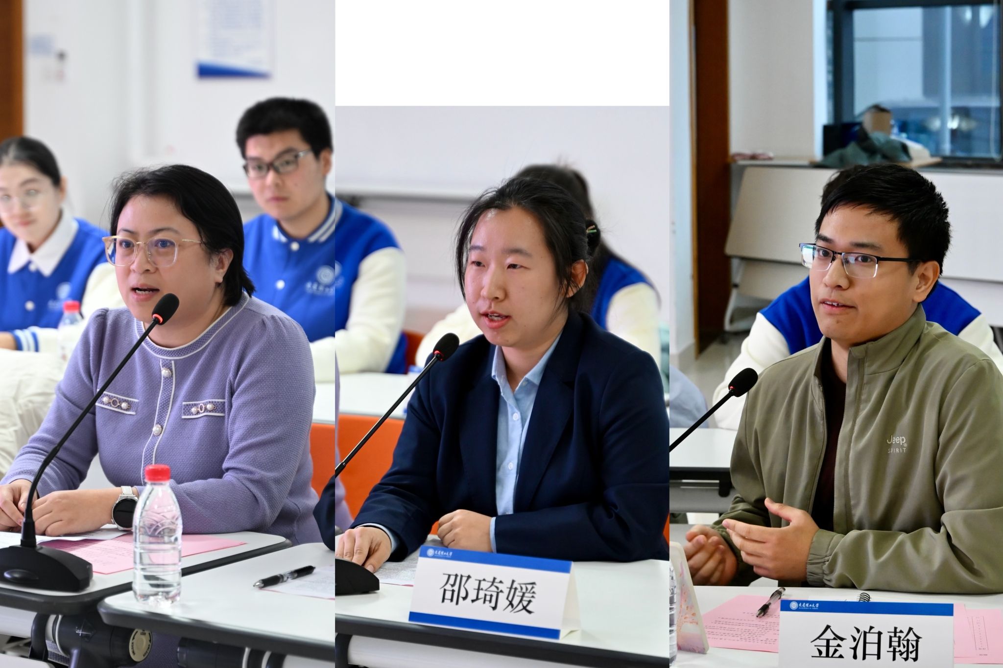 会上,参会青年、特邀企业代表分别围绕青年担当、科研转化与产业发展开展深入对话。我校博士生宣讲团团长曹宇博与北京大学马克思主义学院硕士研究生代表赵宇轩以“叙述者”的视角,结合学习研究经历,探讨新时代青年如何在国家发展大局中找准定位、提升能力、服务社会。来自产业一线的大连诚泽检测有限公司质控部实验室负责人杨艳、大连益大精密橡胶制品有限公司助理工程师邵琦媛,分享在金普新区开展研发工作的实践体会,呈现科技成果从实验室走向生产线、从技术突破走向产业应用的真实路径。东北博联秘书长、北京大学光华管理学院博士研究生金泊翰从人才联结与生态构建的角度,交流高层次人才与地方发展机遇对接的观察与思考。
