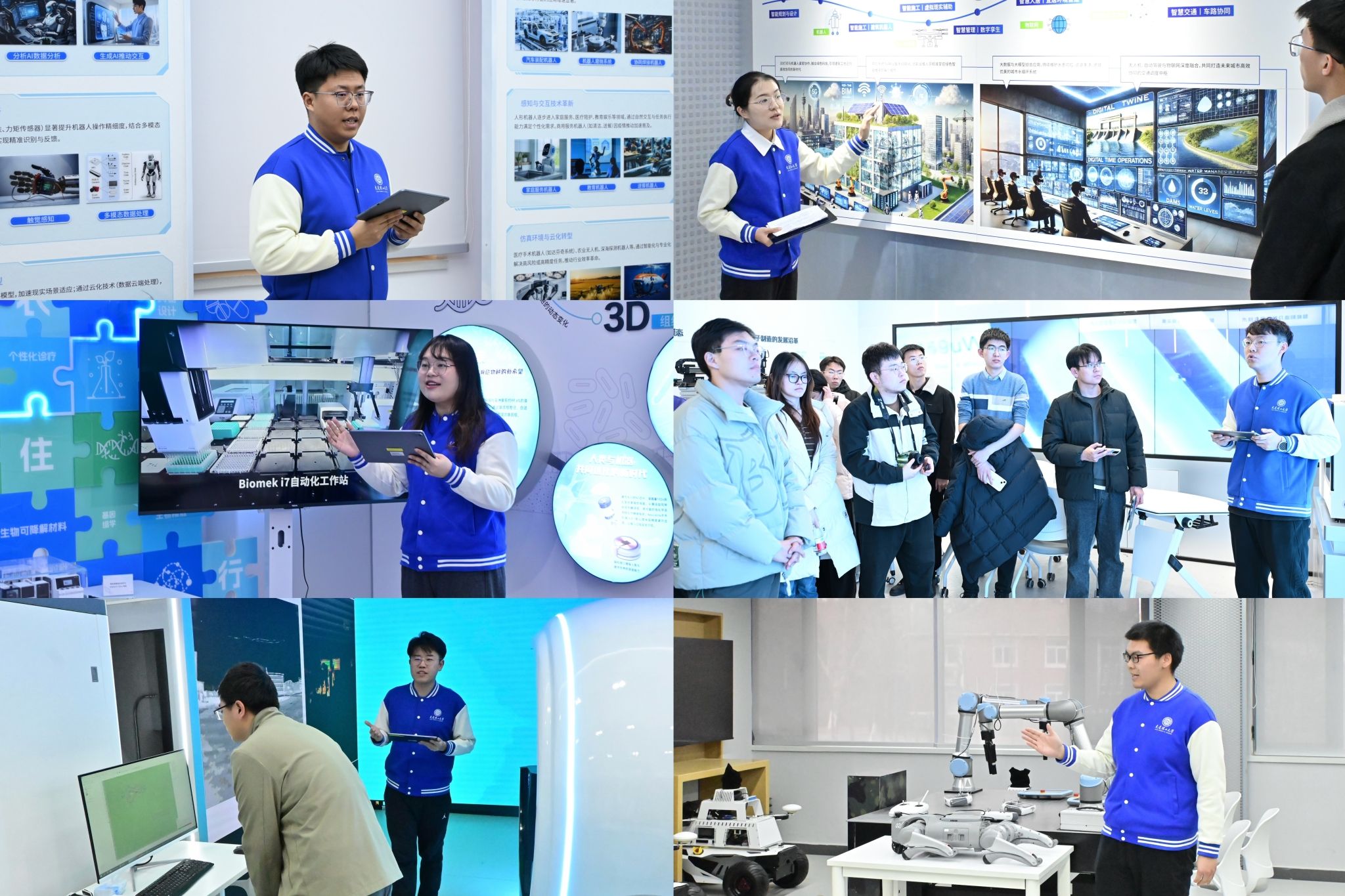 联学活动开始前,东北博联实践团还走进学校“人工智能+”交叉学科空间、“攀登”共青团科技创新基地进行参访学习。博士生宣讲团讲师围绕学科交叉、技术创新与人才培养等维度,系统介绍智能制造、智能车辆、生物智能与人工智能等方向的研究进展与应用前景。现场,同学们近距离观摩无人驾驶车辆、智能机器人等科研成果,直观了解人工智能技术对传统产业的赋能路径,并详细了解学校团委通过“攀登杯”竞赛、“三早”工作坊、双创社团等方式搭建科创实践平台、激发青年创新创业能力的做法与成效。