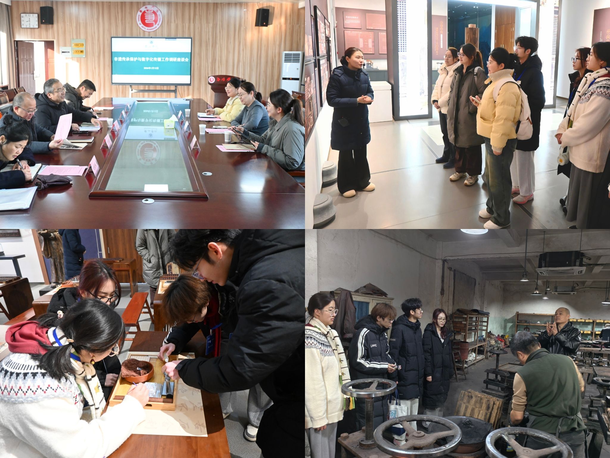 聚焦探索大连贝雕传承新路径,团队奔赴黄山、大连两地开展深度调研。与黄山学院交流“非遗数字创意”布局,走访黄山市非遗馆并与徽州歙砚、徽墨等项目传承人对话,与国家级传承人金吉探讨贝雕发展出路,致力构建线上线下传播矩阵,擦亮大连贝雕文化名片。