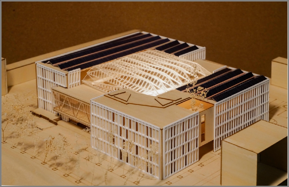 在低碳发展与建筑工业化的大背景之下,本作品对我校建筑与艺术学院一馆进行重新设计,希望它不仅可以承载建筑学师生的基本工作需求,还可以是一个承载新建筑技术的平台。依据这一理念,建筑从需求的角度出发进行空间与形态的设计,同时将各类绿色建筑技术与建筑空间、建造方式等方面紧密结合。结构方面,采用装配式建造并通过专业软件对其进行计算,同时进行创新的钢结构设计与优化,并依托智能审查平台进一步优化结构整体。