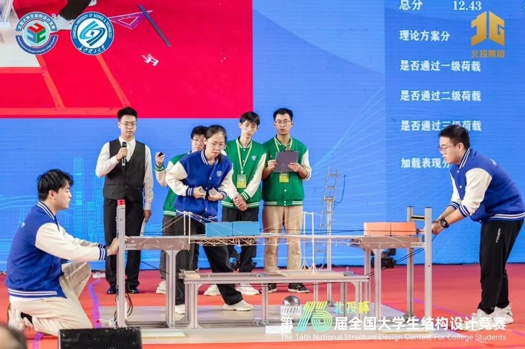 近日,“北投杯”第十六届全国大学生结构设计竞赛在长沙理工大学落幕。由建设工程学院教师崔瑶、吕兴军指导,王鑫垚领队,崔耀中、李洋、童润楠三名学生组成的大工“河山一统队”斩获全国一等奖,位列全国第十,是我校继2009年后,时隔十三年再次获得该奖项。