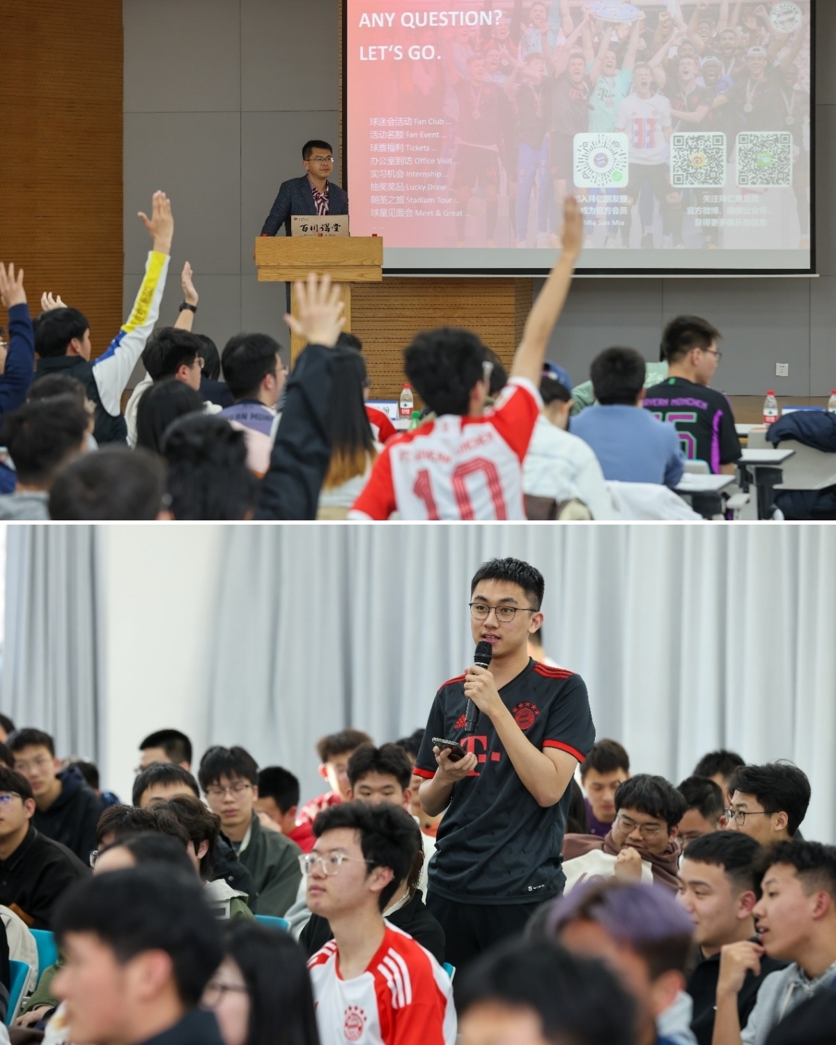 真诚、热爱、合作、拼搏、不言弃……作为“世界第一运动”,足球具有瞬息万变的竞技魅力、永不言败的精神力量和凝聚人心的文化意义。讲座中,史越川表示,拜仁十分注重国内顶尖教育项目的发展,与众多国内知名大学建立起长期合作关系,与学生群体同频同行。分享期间,史越川言辞风趣,频频互动,现场气氛高涨。
