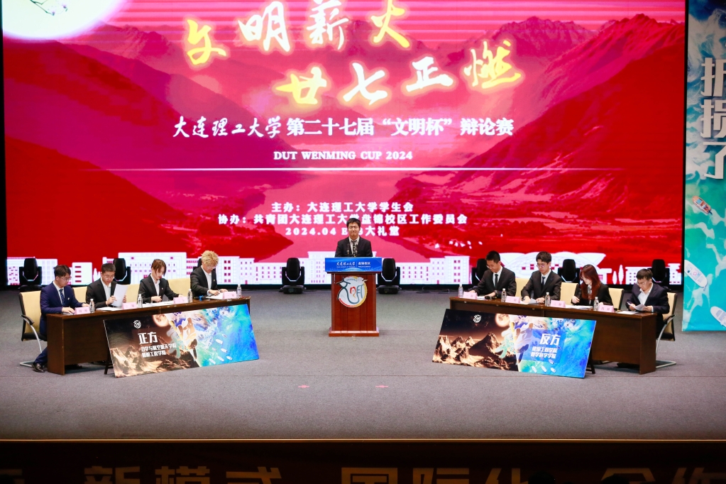 近日,由校学生会主办,材料科学与工程学院学生会、公共管理学院学生会共同承办,盘锦校区团工委协办的第二十七届“文明杯”辩论赛决赛在盘锦校区大礼堂举行。近800名盘锦校区学子现场观赛,与讲辩精英们共同见证决赛时刻。全校18支队伍经过历时一个月的辩论角逐,最终,力学与航空航天学院、船舶工程学院联队,建设工程学院、数学科学学院联队会师决赛。国际华语辩论邀请赛常驻评委、四川大学辩论队教练罗淼,武汉大学辩论队执行教练黄思晗,我校辩论队教练邹文启、辩论队执行教练刘开、辩论队第十三届副队长孙雪洋,华语辩论世界杯大连赛区主席、大连交通大学辩论队教练林治昊,大连海事大学校辩论队执行教练林钰凯担任评委。