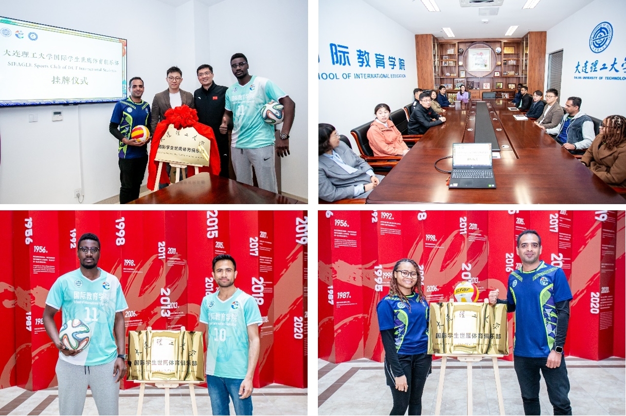 4月28日,我校国际学生世鹰体育俱乐部(SlEAGLE SC)挂牌仪式在海川楼D111会议室举行。体育与健康学院副院长高峰杉,国际教育学院院长助理、综合办公室主任张焱出席仪式。国际教育学院学生事务办公室主任张天昊,社团指导教师付崇彬、赵雨婷,体育与健康学院党委组织员赵敏、办公室主任苗延妮、教务员林科辉、足球指导教师程相铮,国际学生足球队队员代表MOUSTAPHA NIASSE、MUHAMMAD YASIR ISHAQ,国际学生排球队队员代表FLORINDA CLAUDIA SOTOMANE AMADO、AZHAR ALI参加仪式。