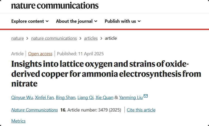 近日,环境学院科研团队在《自然》子刊《自然-通讯》(Nature Communications)上在线发表了题为“氧化物衍生铜中的残留晶格氧和晶格应变在促进硝酸盐还原反应中的新见解”(Insights into lattice oxygen and strains of oxide-derived copper for ammonia electrosynthesis from nitrate)的研究论文,团队成员吴钦岳为论文第一作者,刘艳明为论文通讯作者。研究报道了含有残余晶格氧和晶格应变的氧化物衍生铜纳米片阵列(OD-Cu NSs),以促进通过eNO3RR合成NH3的性能。