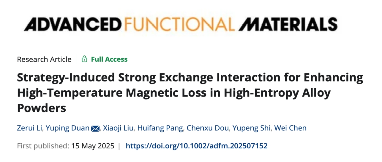 此外,高速武器装备在高温环境中的隐身要求对高温微波吸收材料提出了更高的温度适应性要求。在高温吸收剂方面,传统的单主元素合金依赖于添加高比例钴、铁等磁性金属提升居里温度,但这会导致电导率升高,引发高温下的阻抗失配和电磁波反射问题。段玉平教授研究团队通过协同策略设计高熵合金,诱导了强的d-f轨道交换相互作用,实现优异的高温磁性能和磁损耗。最新成果以“策略诱导的强交换相互作用,以增强高熵合金粉末的高温磁损耗”(Strategy-inducedstrong exchange interaction for enhancing high-temperature magnetic loss in high-entropy alloypowders)为题进行发表。