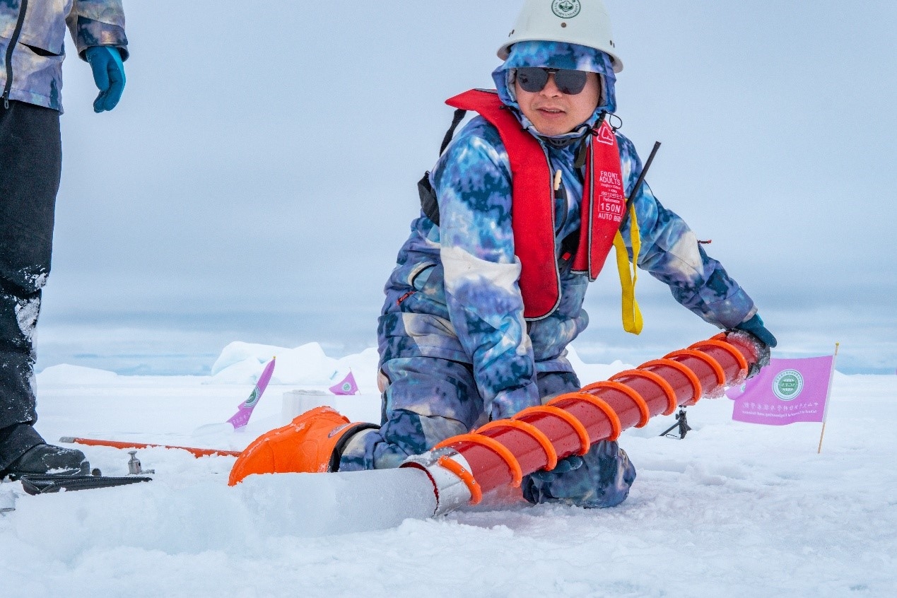 卢鹏教授在本次考察中主要负责海冰基本物理和力学性质、冰雪辐射特征等现场考察任务。在现场考察过程中,卢鹏教授克服北极恶劣的天气条件,与其他考察队员密切合作,圆满完成了各项工作,获得了大量珍贵的第一手北极海冰现场观测数据。作为冰站队队长,卢鹏教授积极协调现场作业人员、时间与任务,保证了各项海冰现场调查任务的顺利完成,被评选为本航次“先进个人”。同时,卢鹏教授首次面向在校学生开设了冰上、船上联动直播课程,结合科考任务为同学们讲解了冰站冰芯采样与观测过程。
