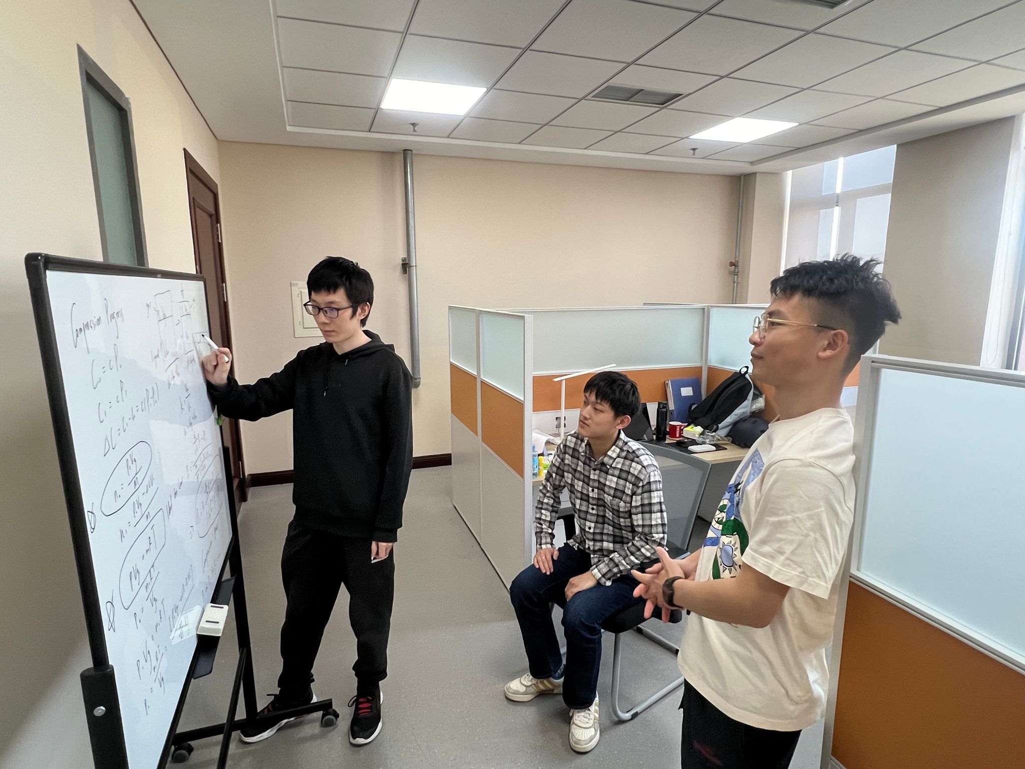 团队成员讨论气液混合流体压缩模型