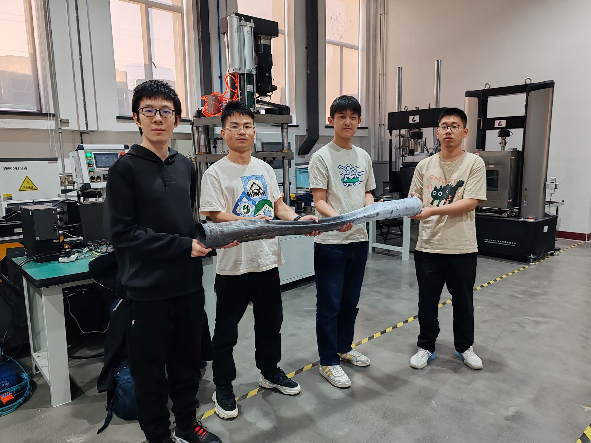 这次实践的成功也让他们第一次对气液混合流体低压成形技术的应用有了信心,团队也根据需要逐渐发展壮大,吸纳了机械设计制造及其自动化(创新班)专业的王野舟、广播电视学专业的金采奇、机械设计制造及其自动化专业的胡智杰、机械设计制造及其自动化(日语强化)专业的刘子意、电子信息类专业的乔节禹、信息管理与信息系统专业的姜李文。