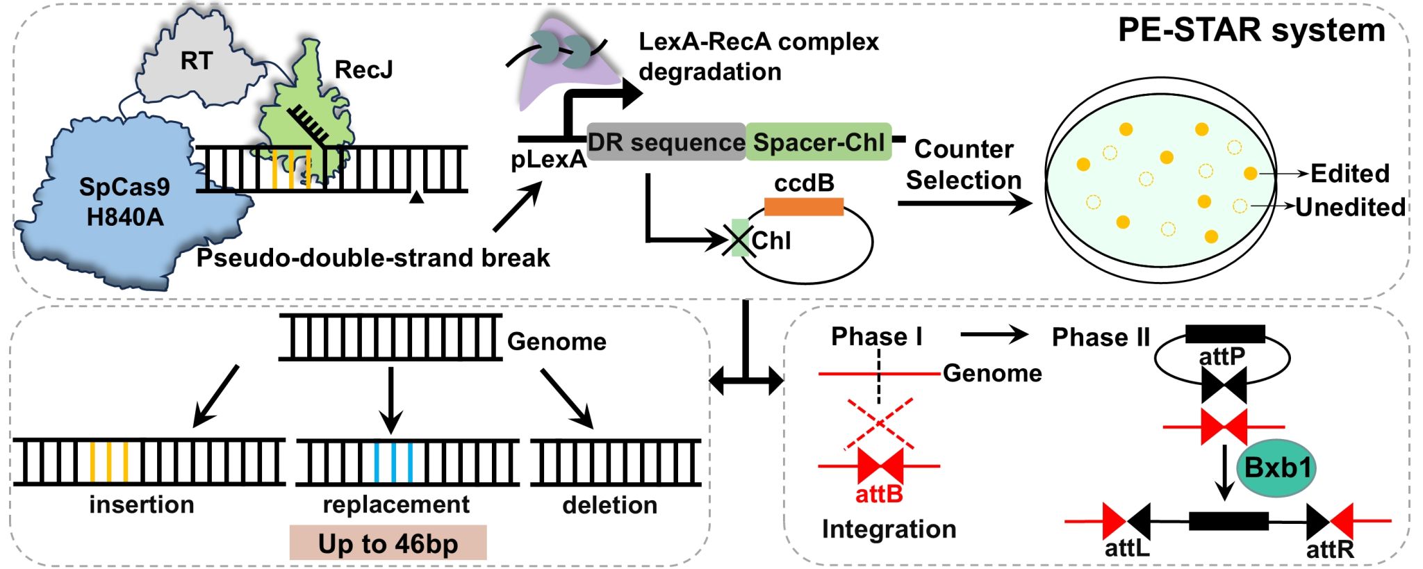 近日,生物工程学院智能生物制造教育部重点实验室基因编辑与合成生物工程研究室刘嵘明教授团队在生化与分子生物学领域国际权威Top期刊《核酸研究》(Nucleic Acids Research)发表题为基于“PE-STAR:通过SOS应答触发和RecJ增强修复可在大肠杆菌中实现高效编辑的先导编辑技术”(PE-STAR:prime editing with SOS-triggered andRecJ-augmented repair enables high-efficiency editing in Escherichia coli)的研究型文章。我校生物工程学院为第一单位,刘嵘明教授、梁丽亚副教授为本文的通讯作者,2023级硕士生段小燕为第一作者。
