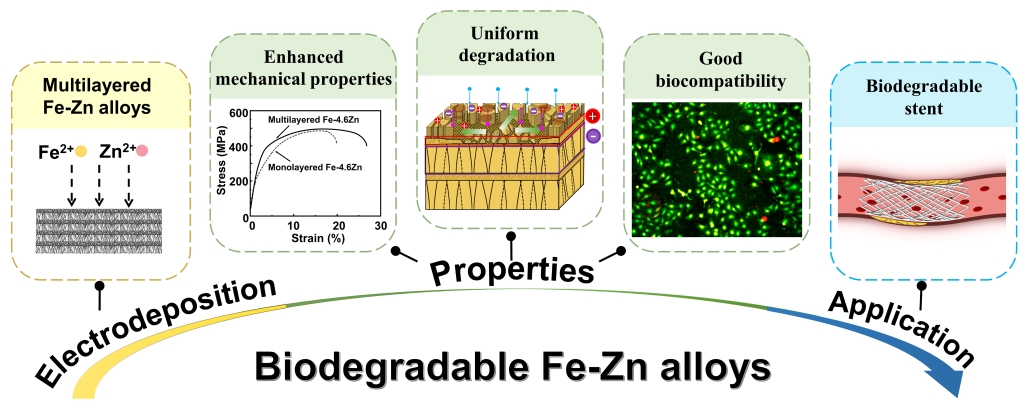 该研究中通过电沉积所制备的层状Fe-Zn合金很有希望能满足生物可降解支架的应用标准,开创铁基材料在冠心病介入治疗领域的新篇章。该研究工作得到了中央高校基本科研业务费和大连理工大学的资助支持。