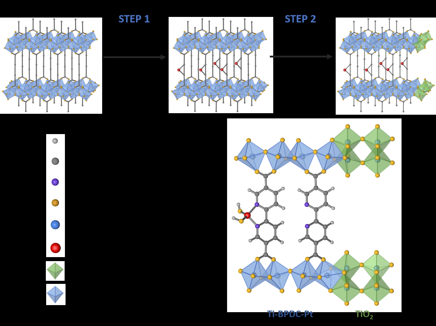 图1. TiO2/Ti-BPDC-Pt光催化剂的合成示意图